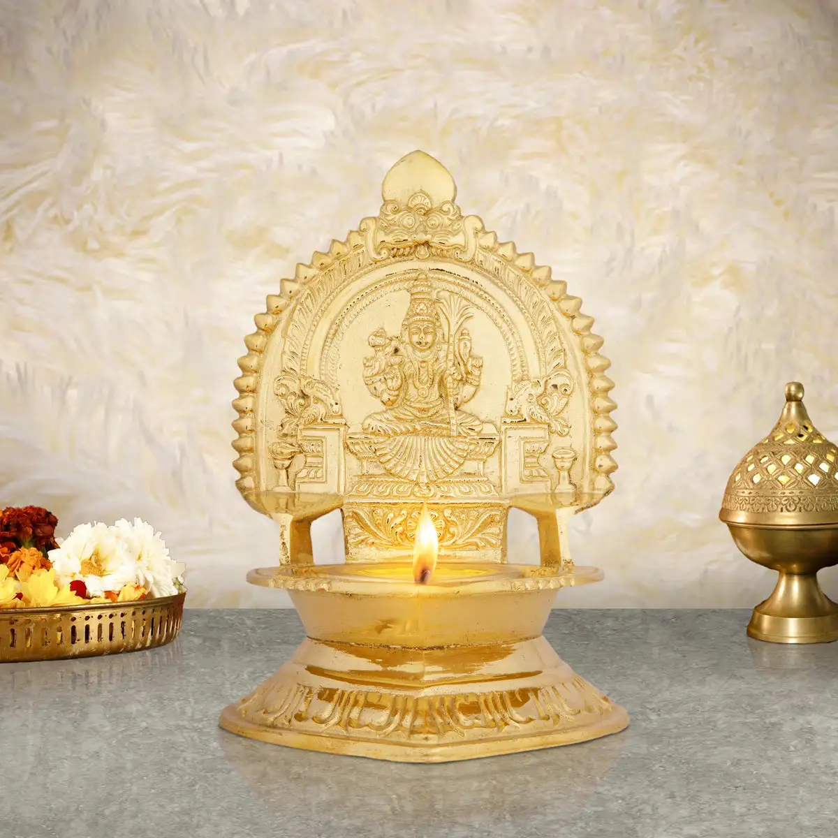 Kanchi Kamakshi Deepam - 7.5 x 5 Inches | Brass Kamatchi Vilakku/ Gold Polish Kamakshi Lamp/ 800 Gms Approx