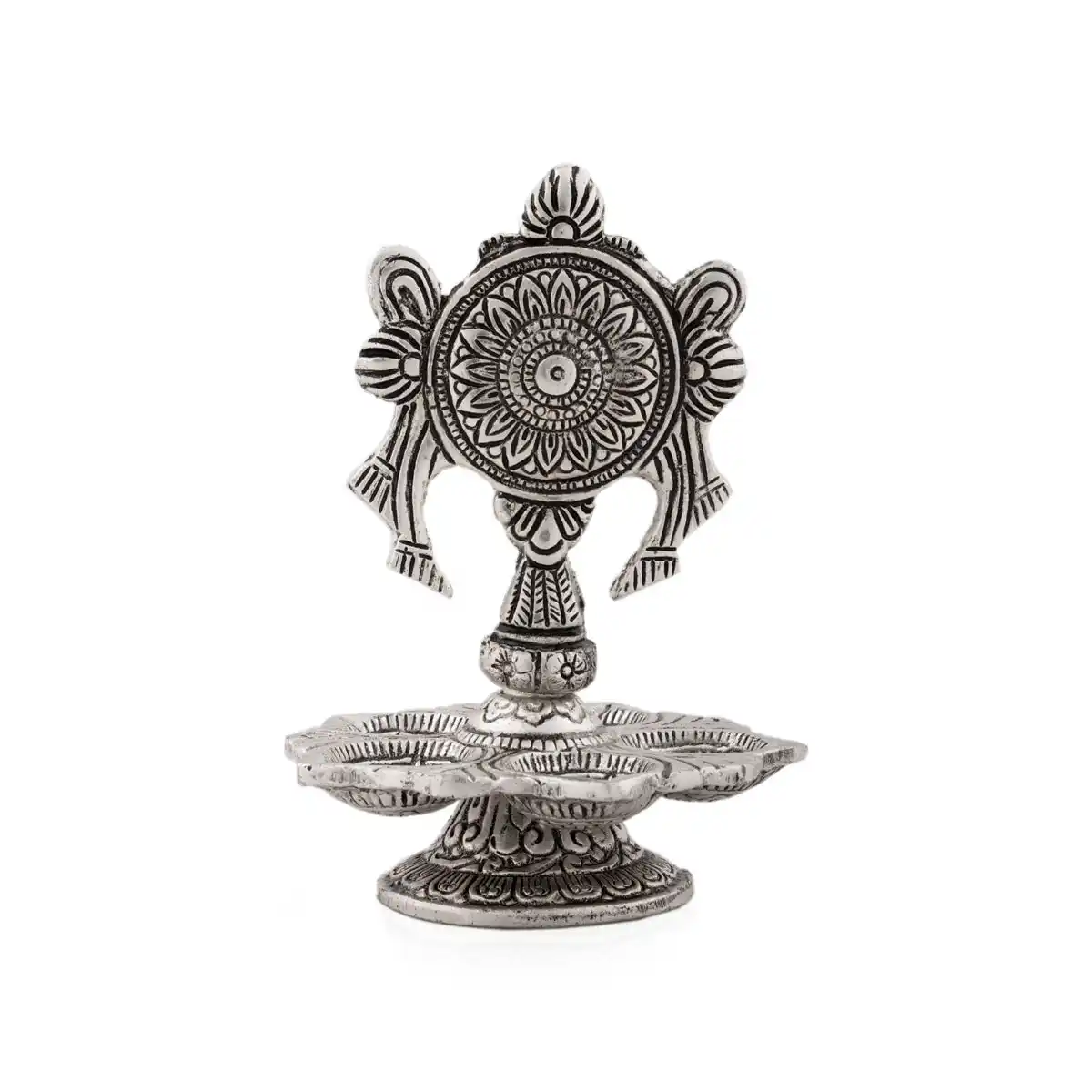 Chakra with 5 Face Deep - 6 x 4 Inches | Aluminium Lamp/ Silver Polish Vilakku for Pooja/ 155 Gms Approx