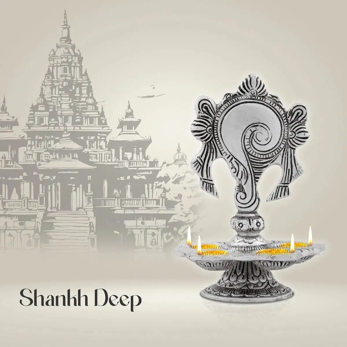 Shankh with 5 Face Deep - 6 x 4 Inches | Aluminium Diya/ Silver Polish Shankh Lamp for Pooja/ 160 Gms Approx