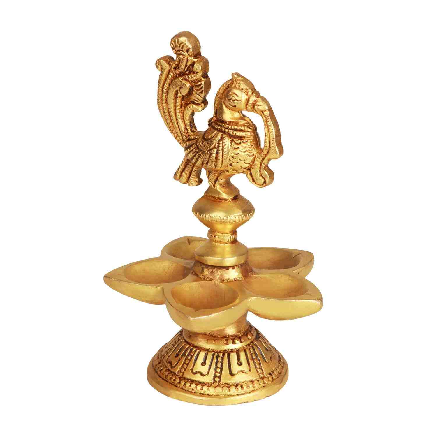 5 Face Diya - 4.5 x 4 Inches | Aluminium Deepam/ Peacock Design Lamp for Pooja/ 130 Gms Approx