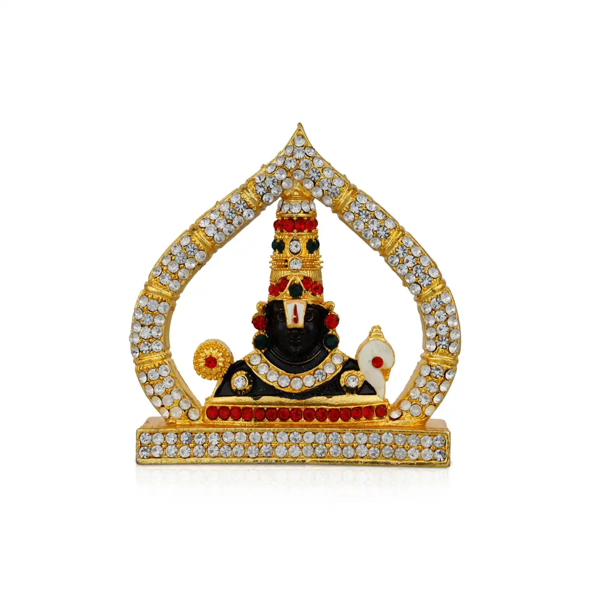 Balaji Murti - 3 x 3 Inches | Multicoloured Stone Balaji Statue/ Gold Polish Tirupati Balaji Idol for Car Decor