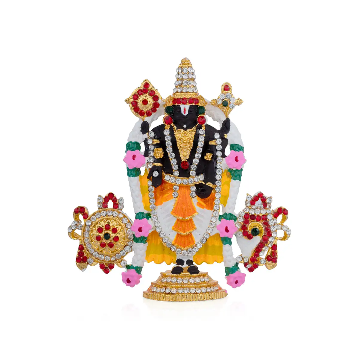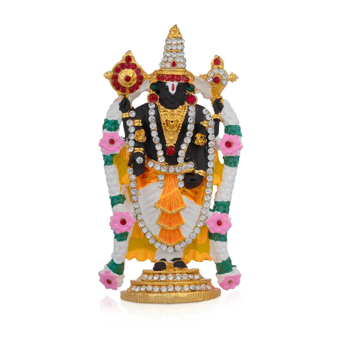 Balaji Murti - 3.5 x 2.25 Inches | Multicolour Stone & Gold Polish Perumal Statue for Worship & Car Decor