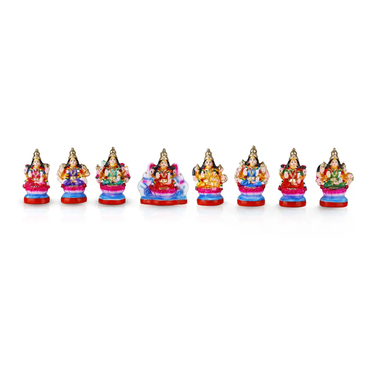 Ashtalakshmi Clay Golu Bommai Set - 8 x 3.5 Inches | Giri Golu Doll/ Navaratri Golu Bomma/Gombe/Bommai