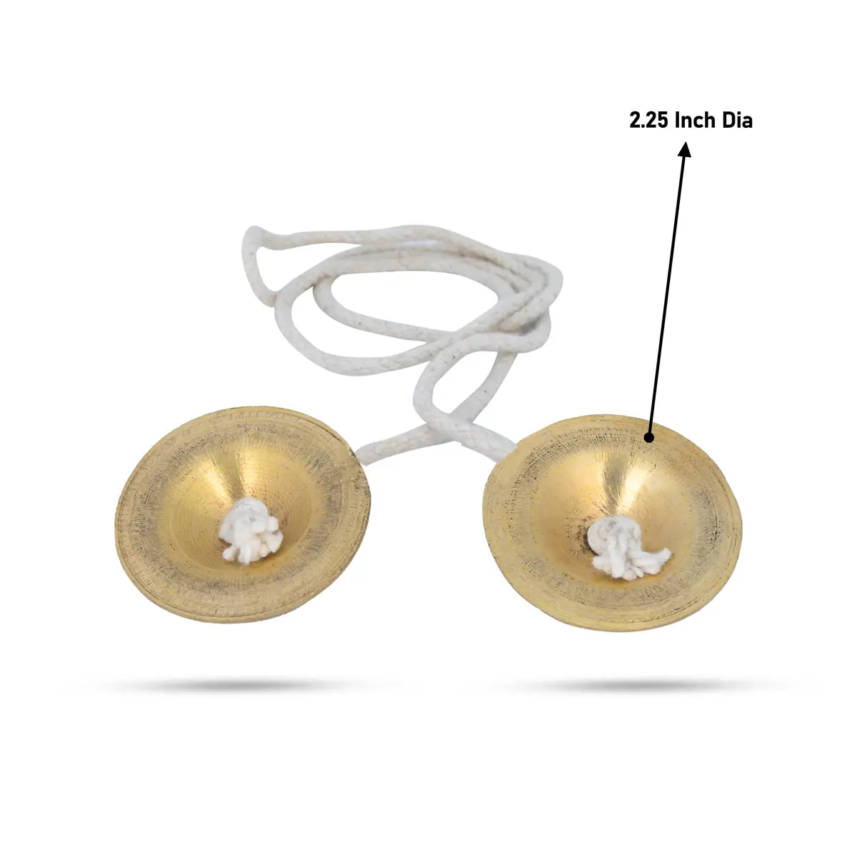 Talam With Rope - 2.25 Inches Dia | Hand Cymbals/ Brass Jalra/ Tallam/ Manjira Taal for Bhajan