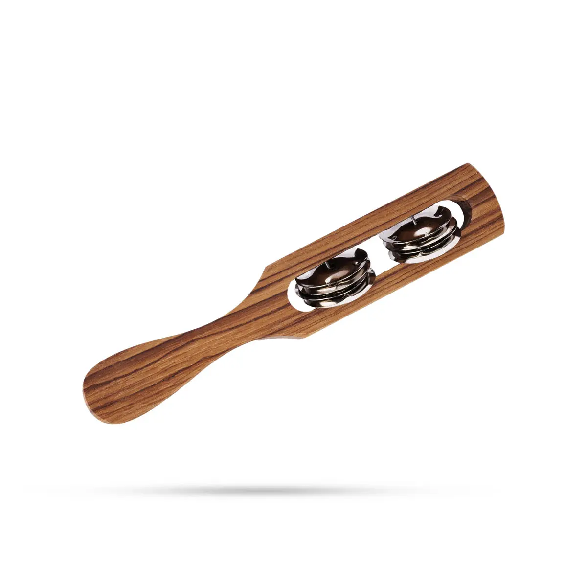 Wooden Hatheli - 10 x 2 Inches | Double Slot Kartal/ Musical Instrument/ Hand Cymbals/ Hand Jingles for Bhajan