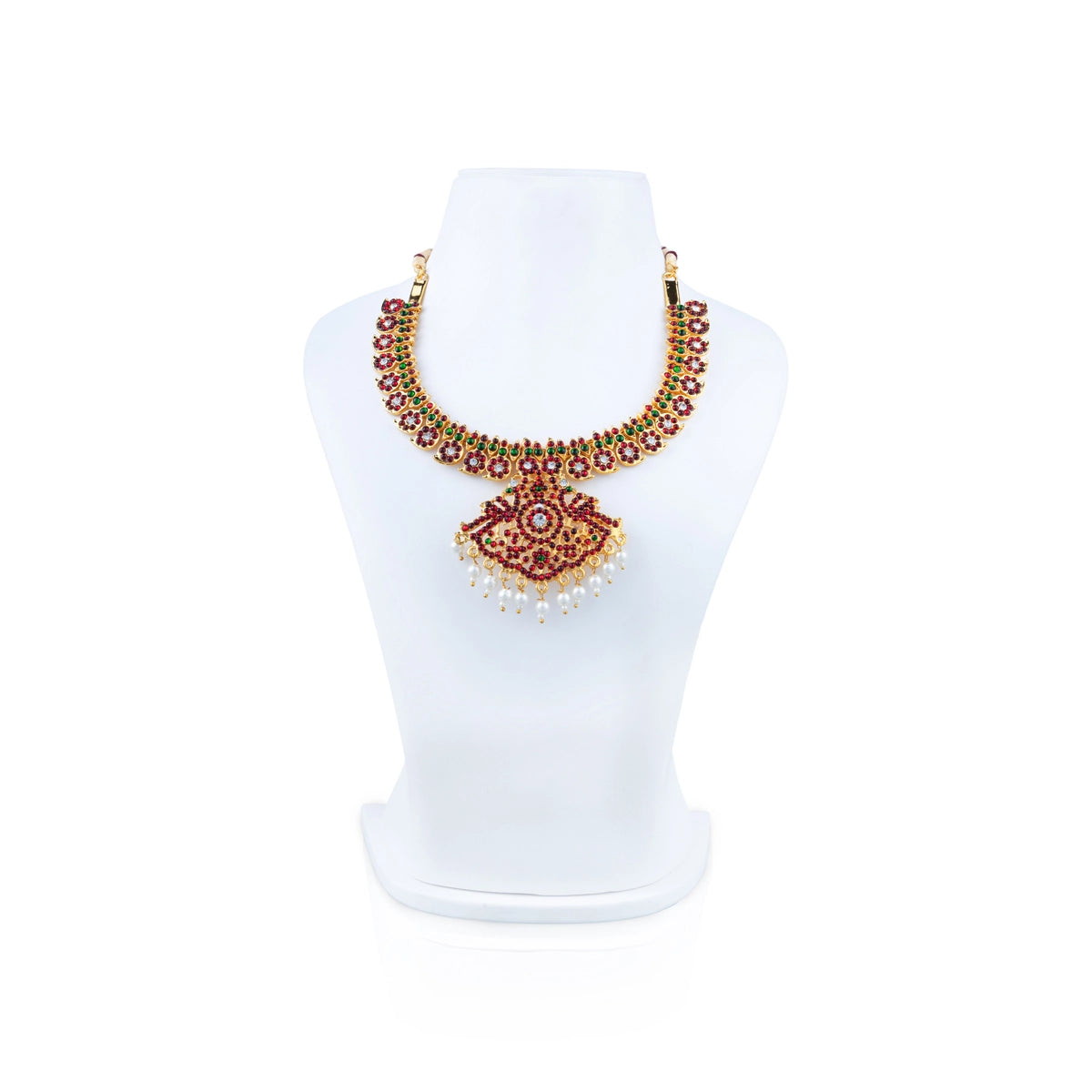 Kemp Necklace - 6.5 Inches | Multicolour Stone Bharatanatyam Jewellery/ Bharatanatyam Ornament for Women