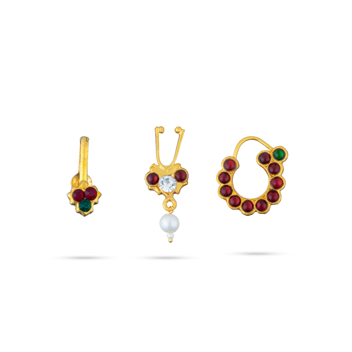 Kemp Stone Nose Pin - 1.25 x 0.5 Inches | Nathu Bullaku/ Bullaku Nose Pin/ Stone Jewellery for Dance