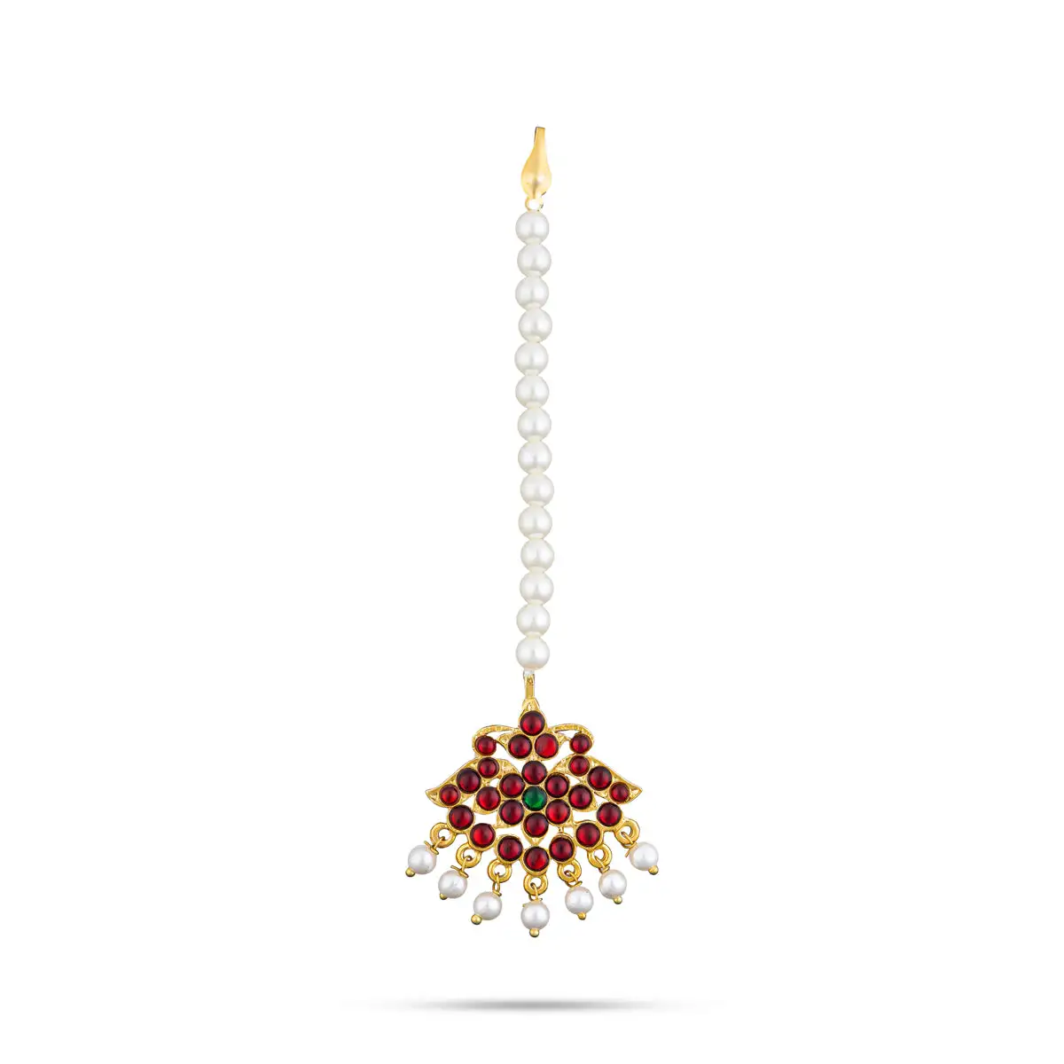 Kemp Nethi Chutti - 5.25 Inches | 1 Line Maangtikka/ Stone Jewellery/ Moti Beads Artificial Jewelry For Dance
