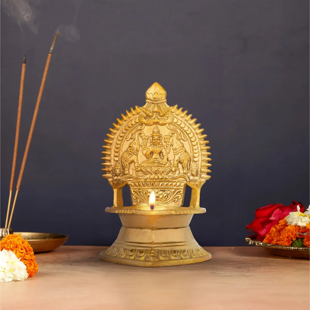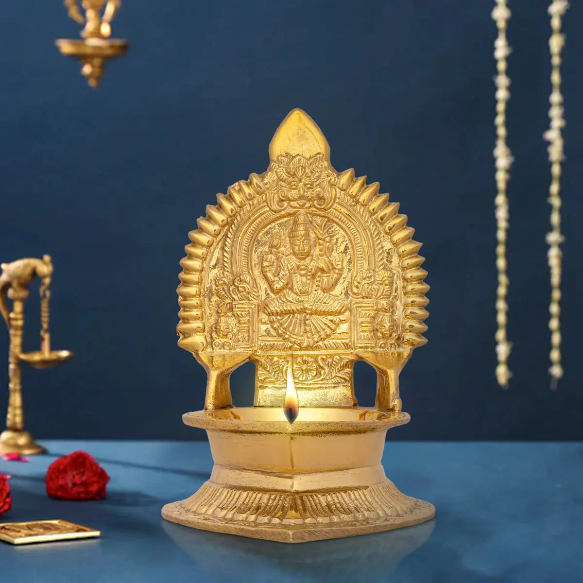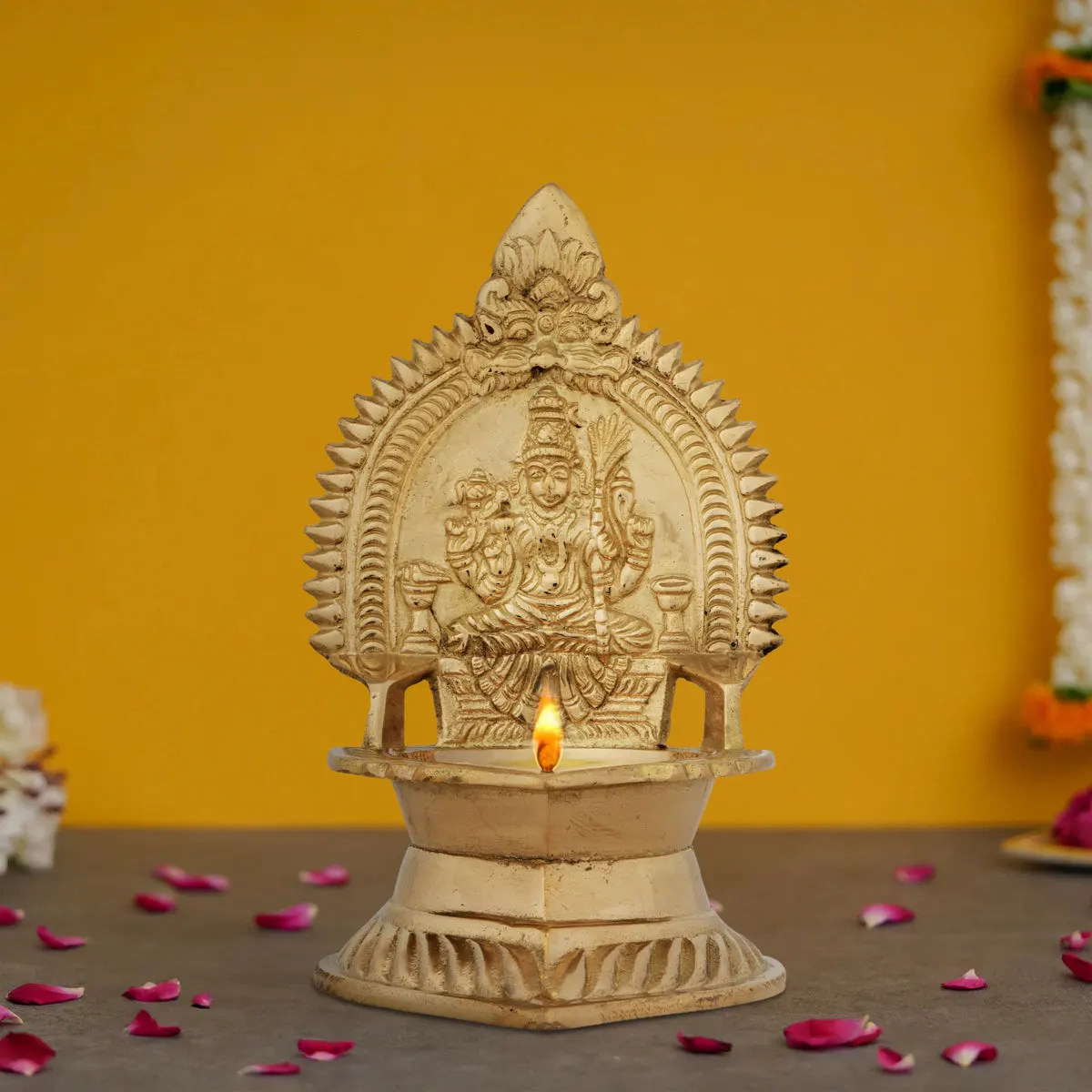 Kuber Kamakshi Lakshmi Lamp - 6 x 3.5 Inches | Brass Vilakku/ Laxmi Deepam for Pooja/ 460 Gms Approx