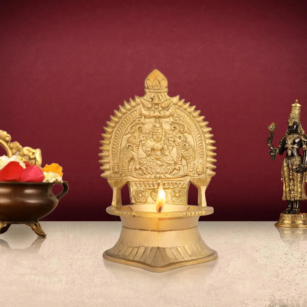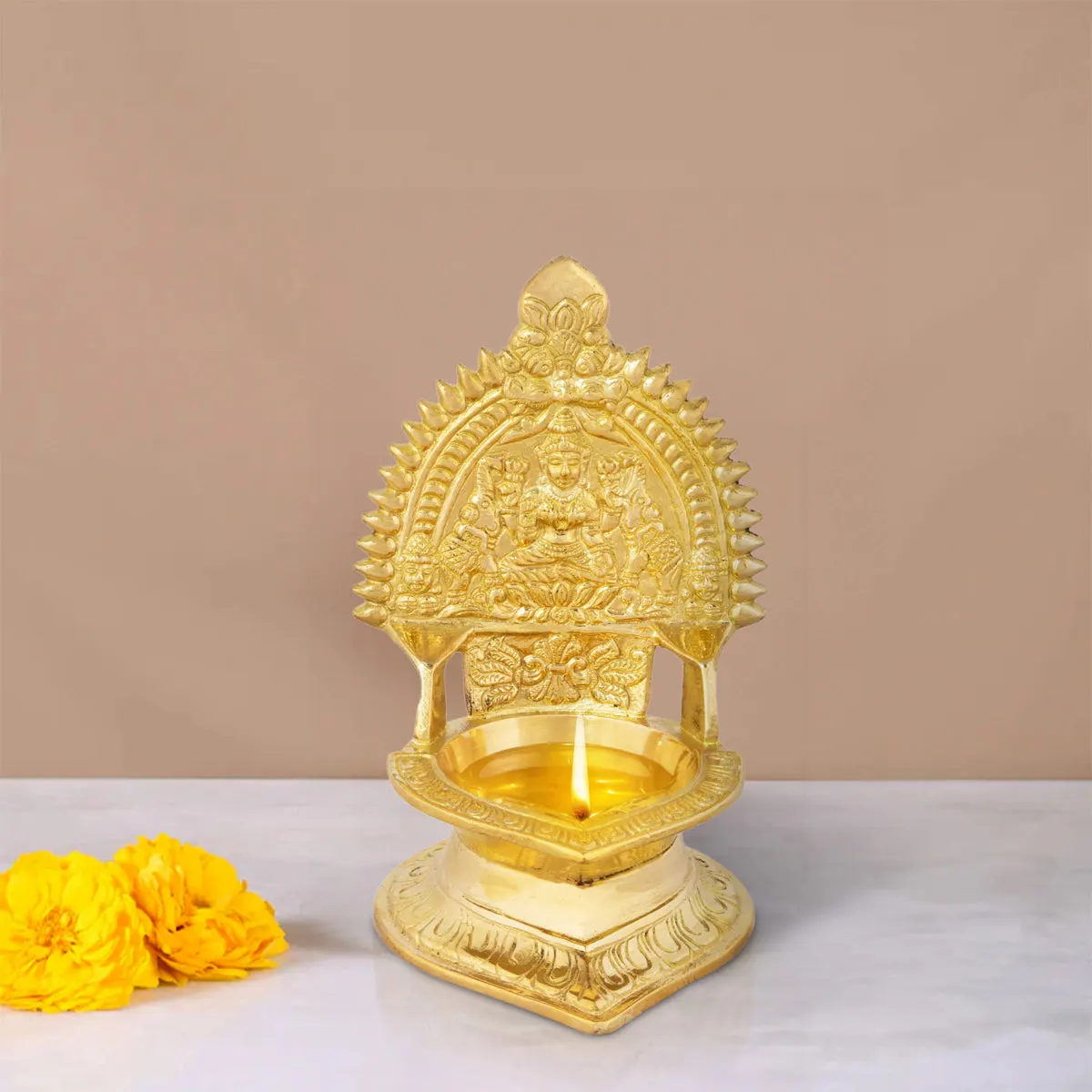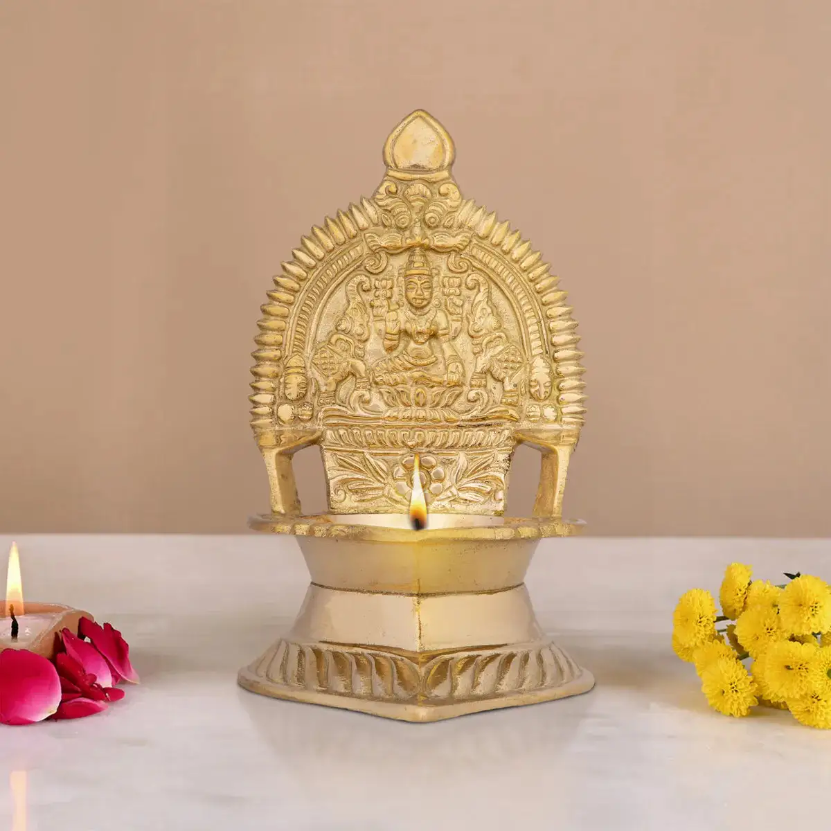 Kuber Kamakshi Lakshmi Lamp - 6 x 3.5 Inches | Brass Vilakku/ Laxmi Deepam for Pooja/ 460 Gms Approx