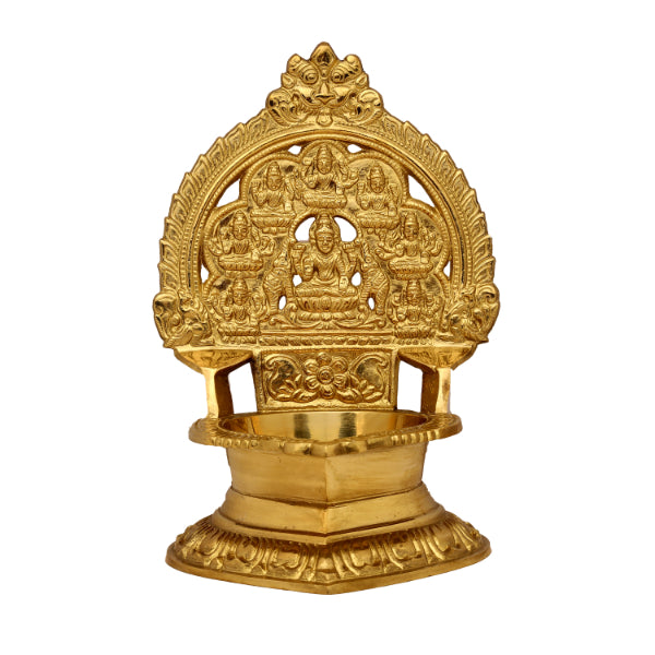Brass Ashta Lakshmi Deepam - 7.5 x 5 Inches | Gold Polish Ashta Lakshmi Vilakku/ 740 Gms Approx