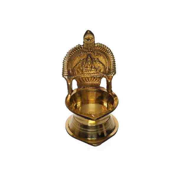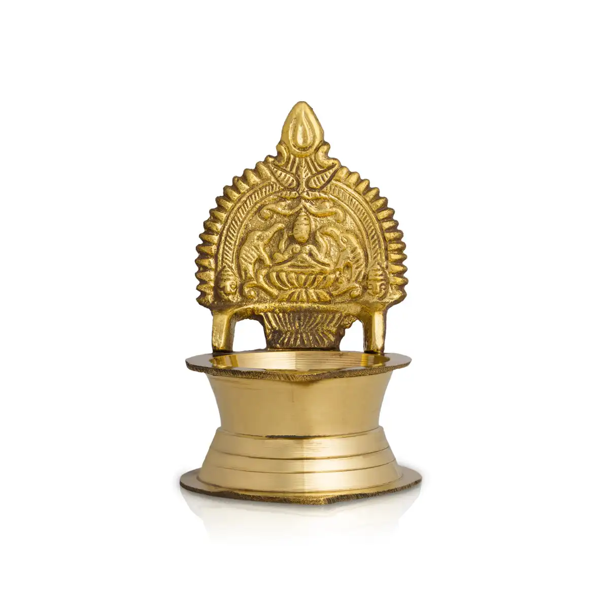 Brass Kamakshi Lamp - 5 x 4 Inches | Gold Polish Vilakku/ Kamatchi Diya for Pooja/ 255 Gms Approx