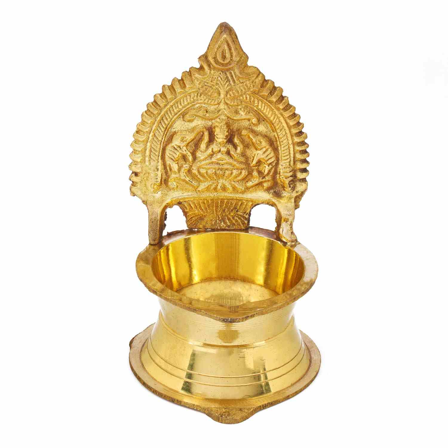 Brass Kamakshi Lamp - 5.5 x 4 Inches | Diya/ Deep/ Gold Polish Kamatchi Vilakku for Home/ 340 Gms Approx