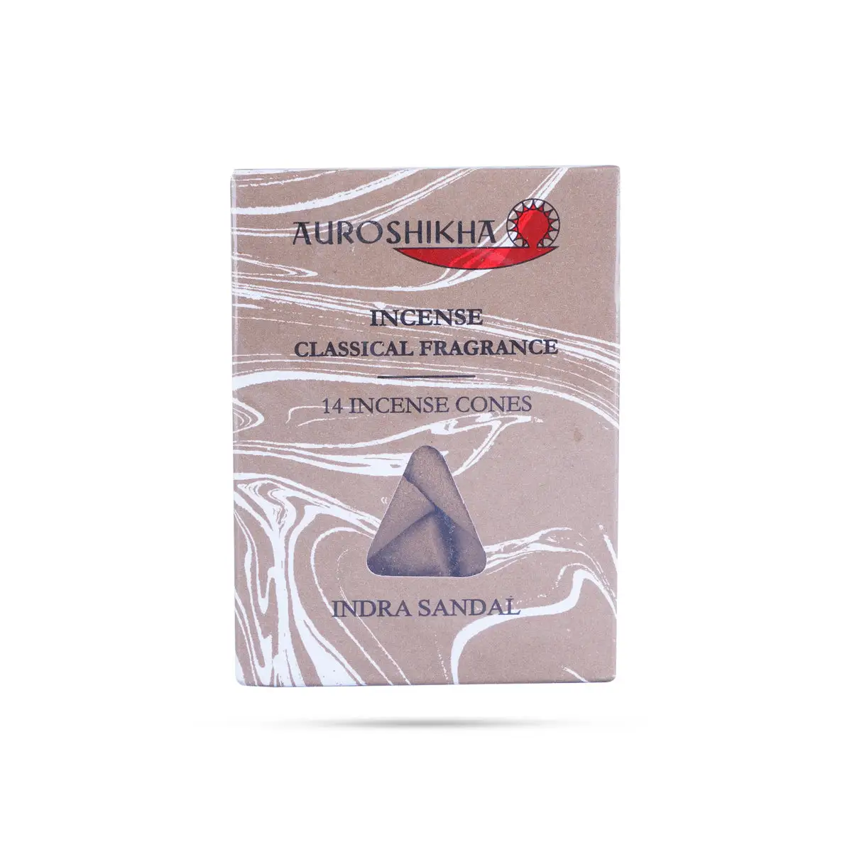 Auroshikha Indra Sandal Incense Cones - 14 Pcs | Incense Classical Fragrance Dhoop Cones/ Sambrani Cones