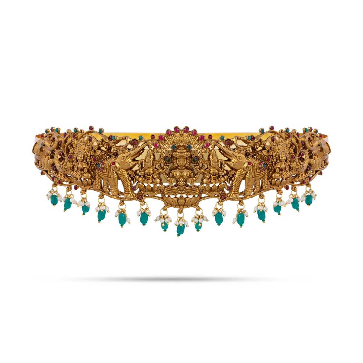 Hip Belt - 1.5 x 9.5 Inches | Antique Gold Polish Jewellery/ Lakshmi With Beads Design Waist Belt for Women