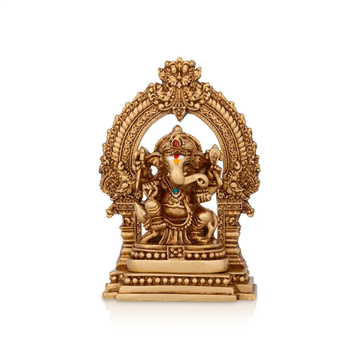 Ganesh Murti With Arch Sitting On Base - 4 x 2.5 Inches | Resin Statue/ Vinayaka Statue for Pooja