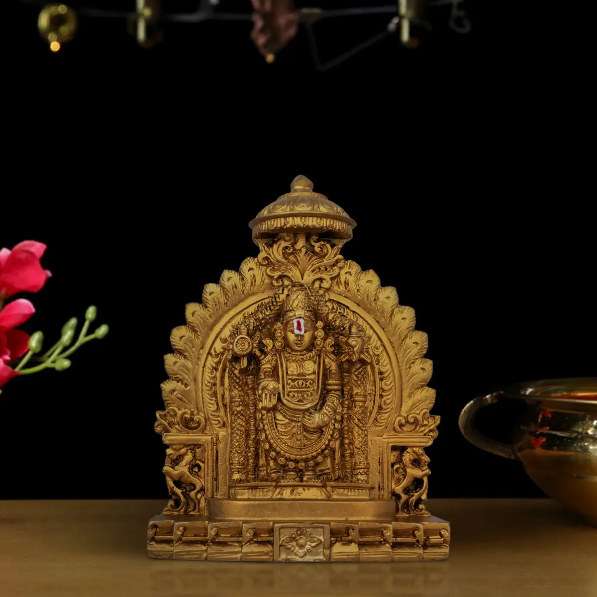 Simhasan Balaji Murti - 5 x 4 Inch | Resin Statue/ Gold Polish Balaji Idol for Pooja/ 296 Gms Approx