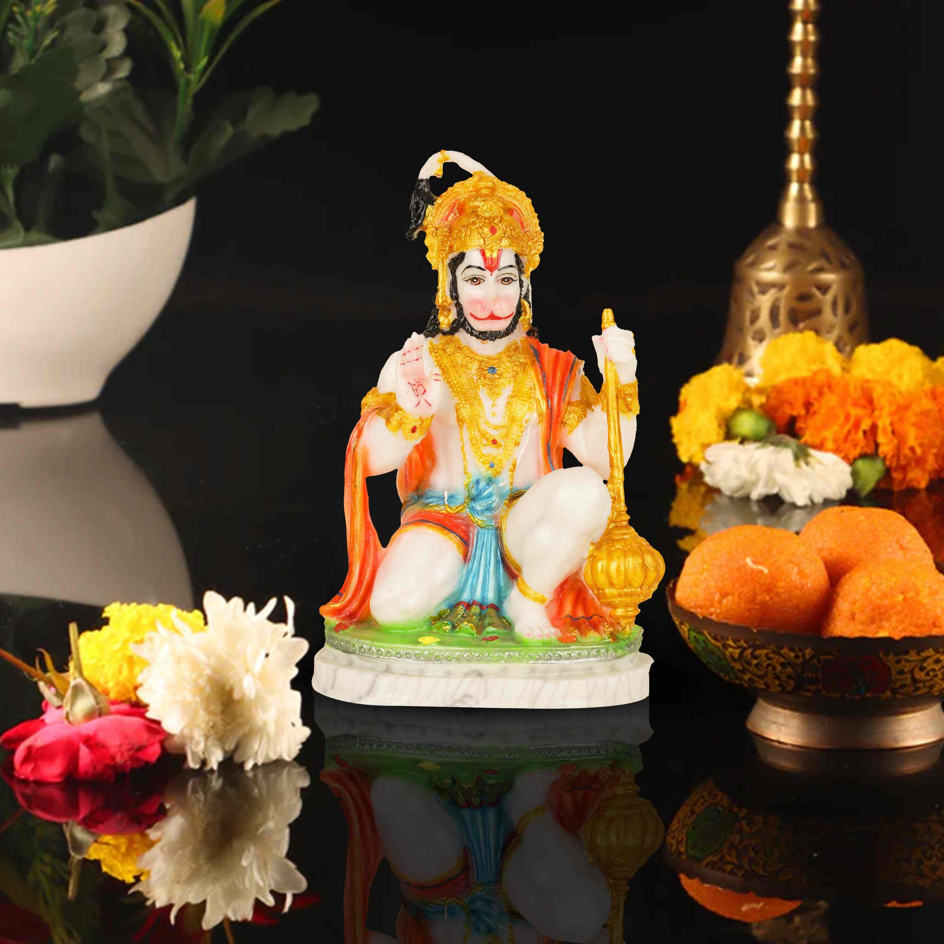 Anjaneya Statue - 9 Inches | Hanuman Statue/ Resin Hanuman Murti for Home Decor