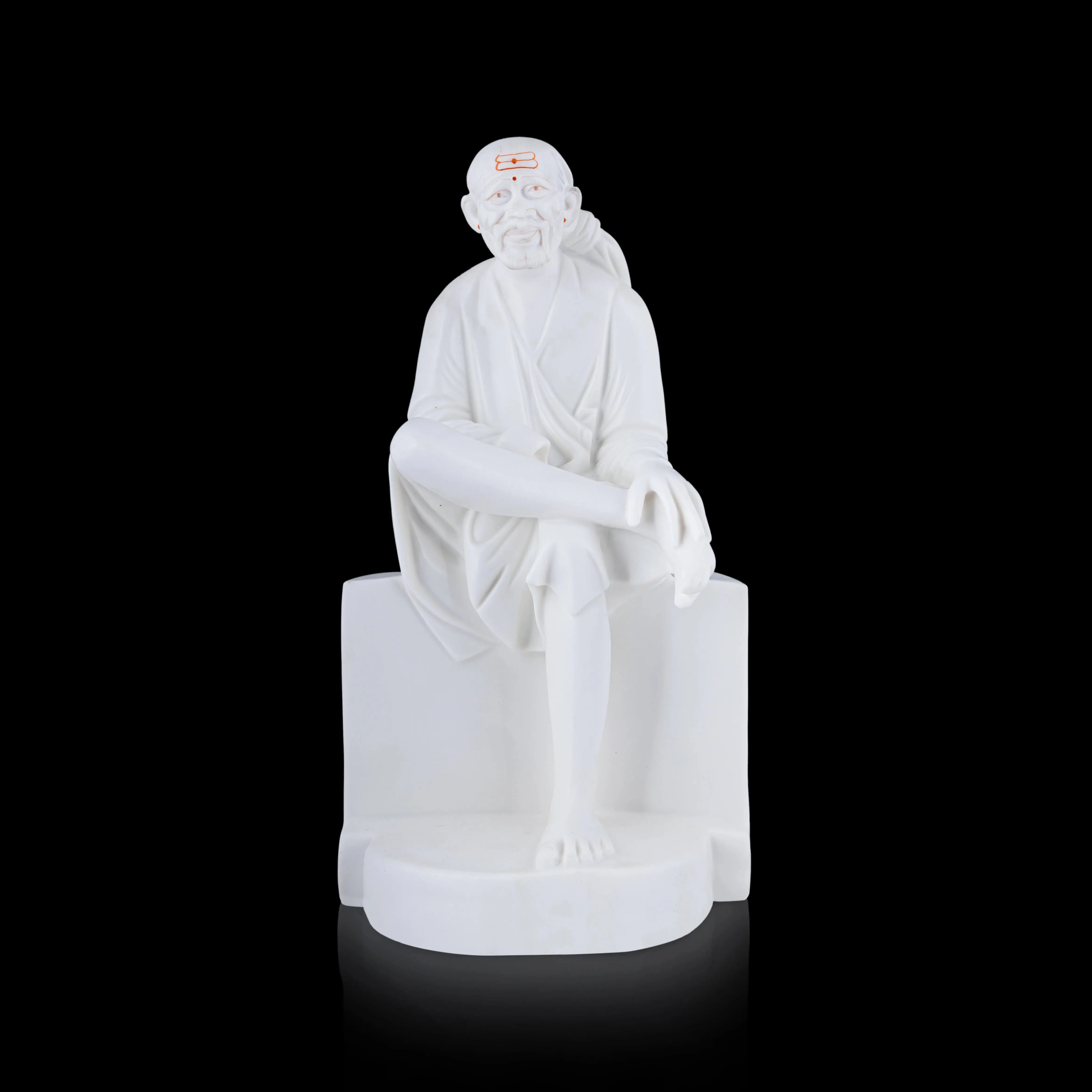 Saibaba Statue Sitting On Base - 18 x 10 Inches | Marble Murti/ Saibaba Idol/ Sai Baba Vigraham for Pooja