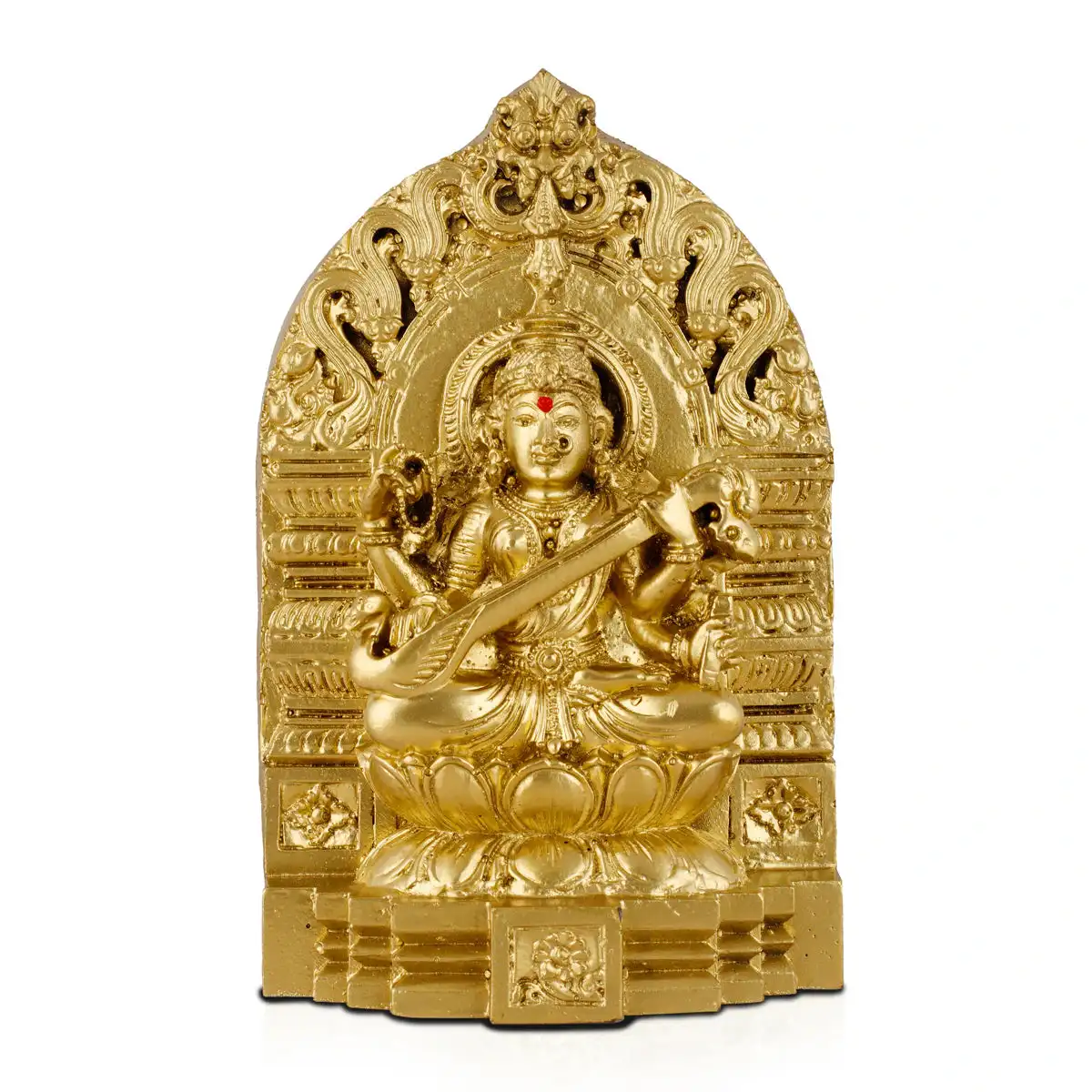 Saraswati Murti - 6 Inches | Resin Saraswati with Arch Idol/ Brass Polish Saraswati Maa Murti for Pooja