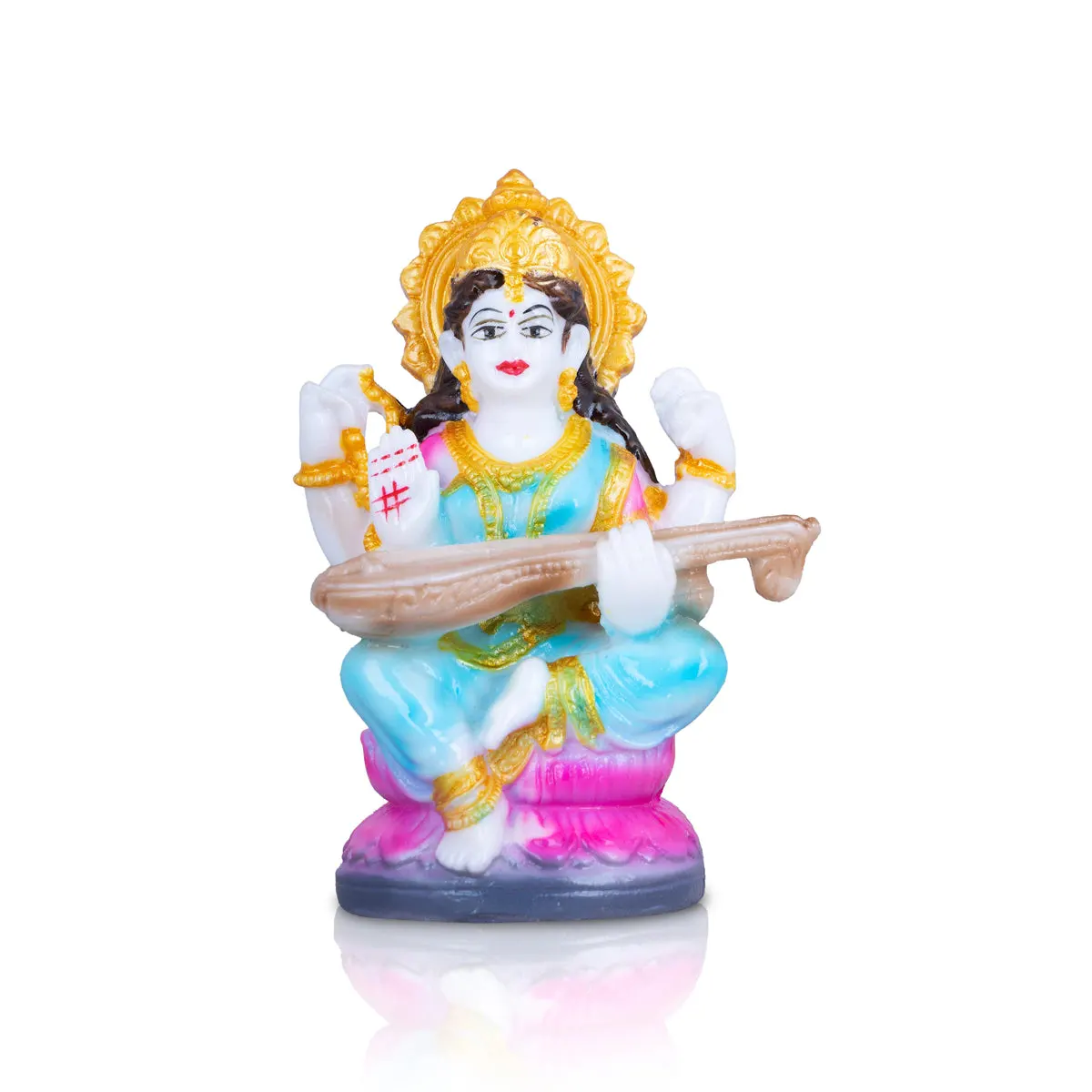 Saraswati Murti Sitting On Lotus - 4.5 x 2.5 Inches | Marble Murti/ Saraswati Idol/Saraswathy Idol for Home