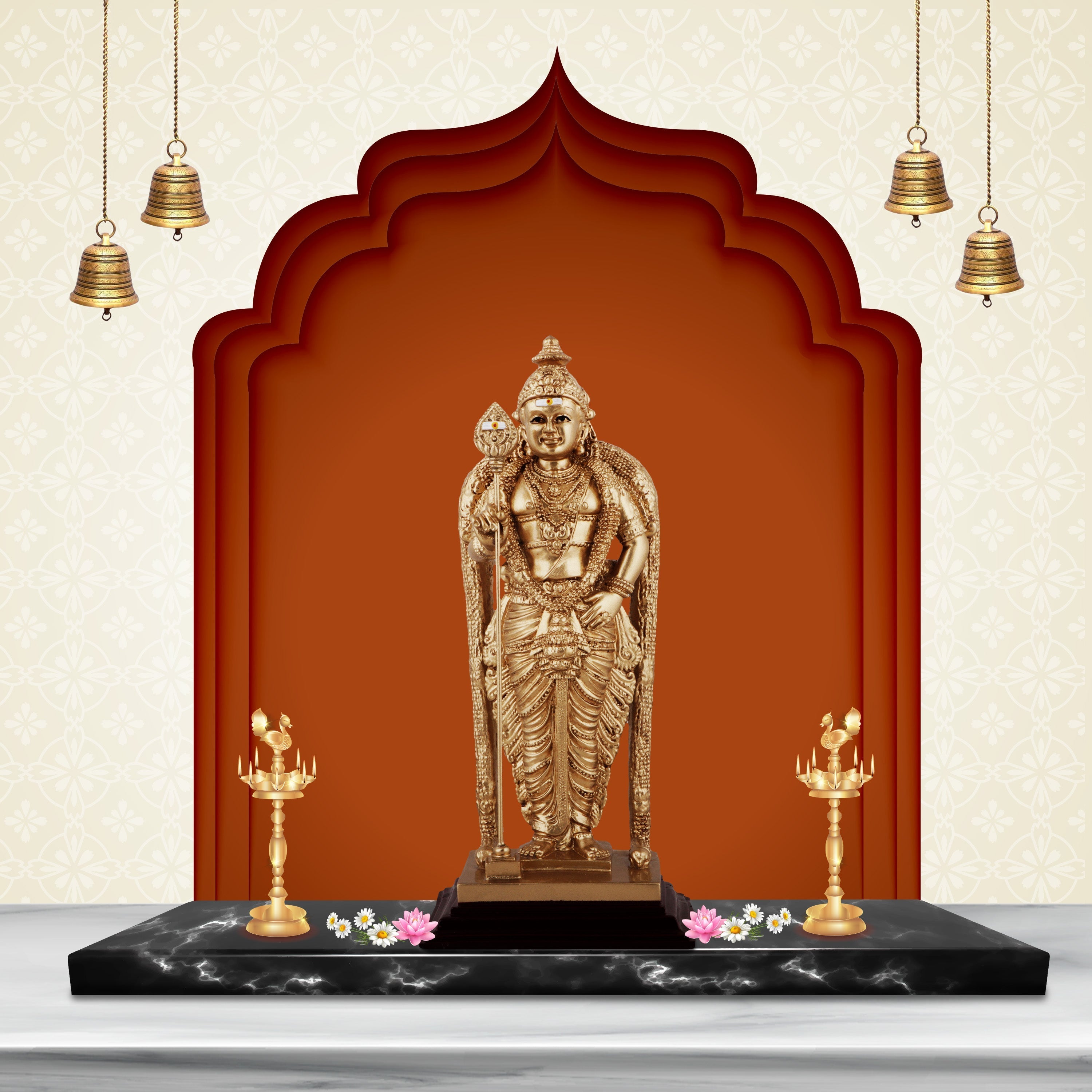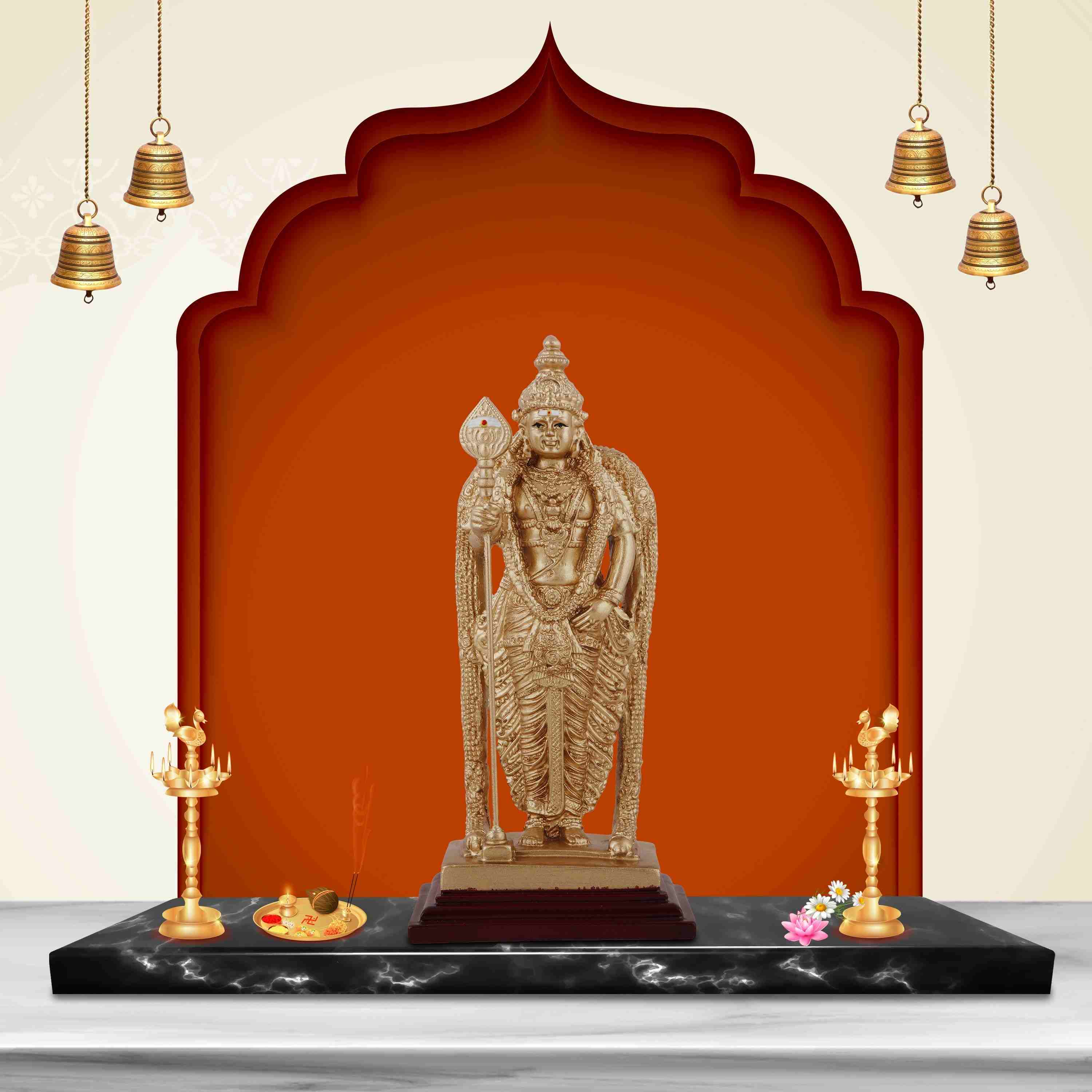 Murugan Statue - 10 x 4.5 Inches | Standing Murugan Idol/ Resin & Gold Polish Murugan Silai for Pooja