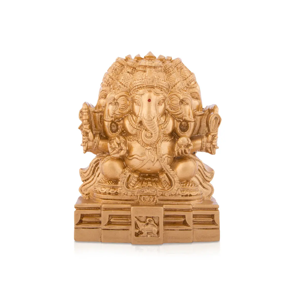 Panchamuga Ganesha Statue - 4 x 3.5 Inches | Gold Polish Vinayagar Statue/ Ganapathi Idol for Pooja