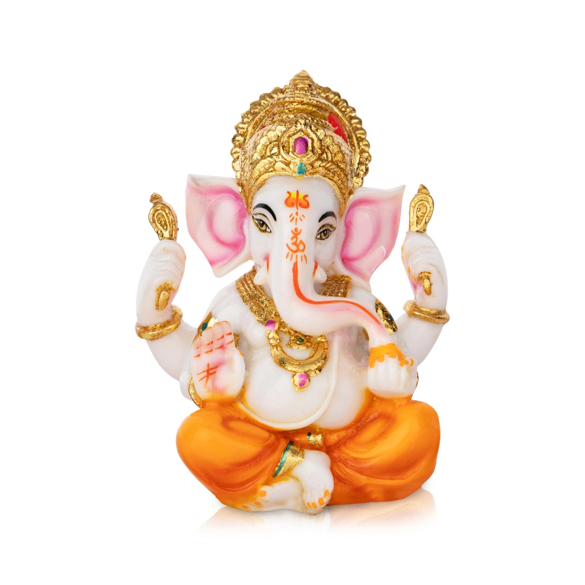 Ganesh Murti - 6 x 5 Inches | Marble Dust Murti/ Painted Vinayaka Statue/ Sitting Ganpati Murti for Worship