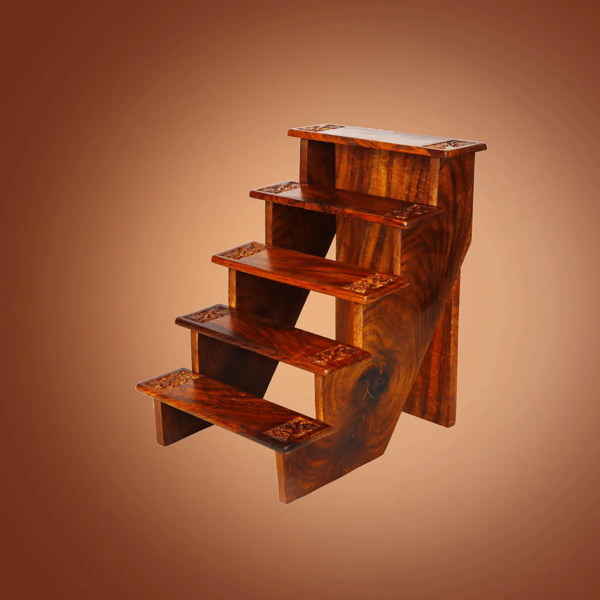 Golu Stand - 11.5 x 8.5 Inches | Wooden Golu Padi/ 5 Steps Golu Steps/ Engraved Flower Design Kolu Stand for Deity