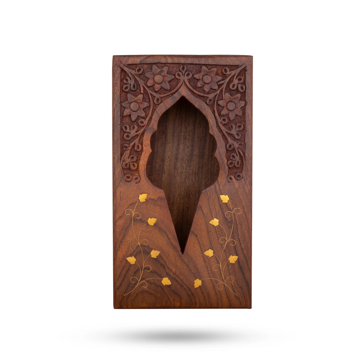Wooden Tissue Box - 3 x 10 x 6 Inches | Hand Carved Wooden Tissue Holder With Brass Design for Home