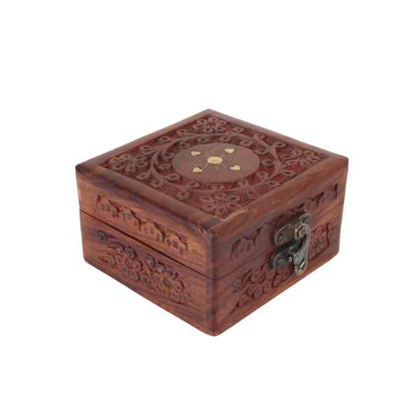 Jewellery Box - 4 x 4 Inches | Storage Box/ Hand Carved Wooden Box/ Storage Container for Home