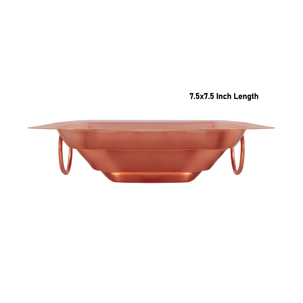Havan Kund Without Stand - 8.5 x 8.5 Inches | Copper Agnihotra Kund With Handle/ Yagna Kund for Pooja/ 380 Gms Approx