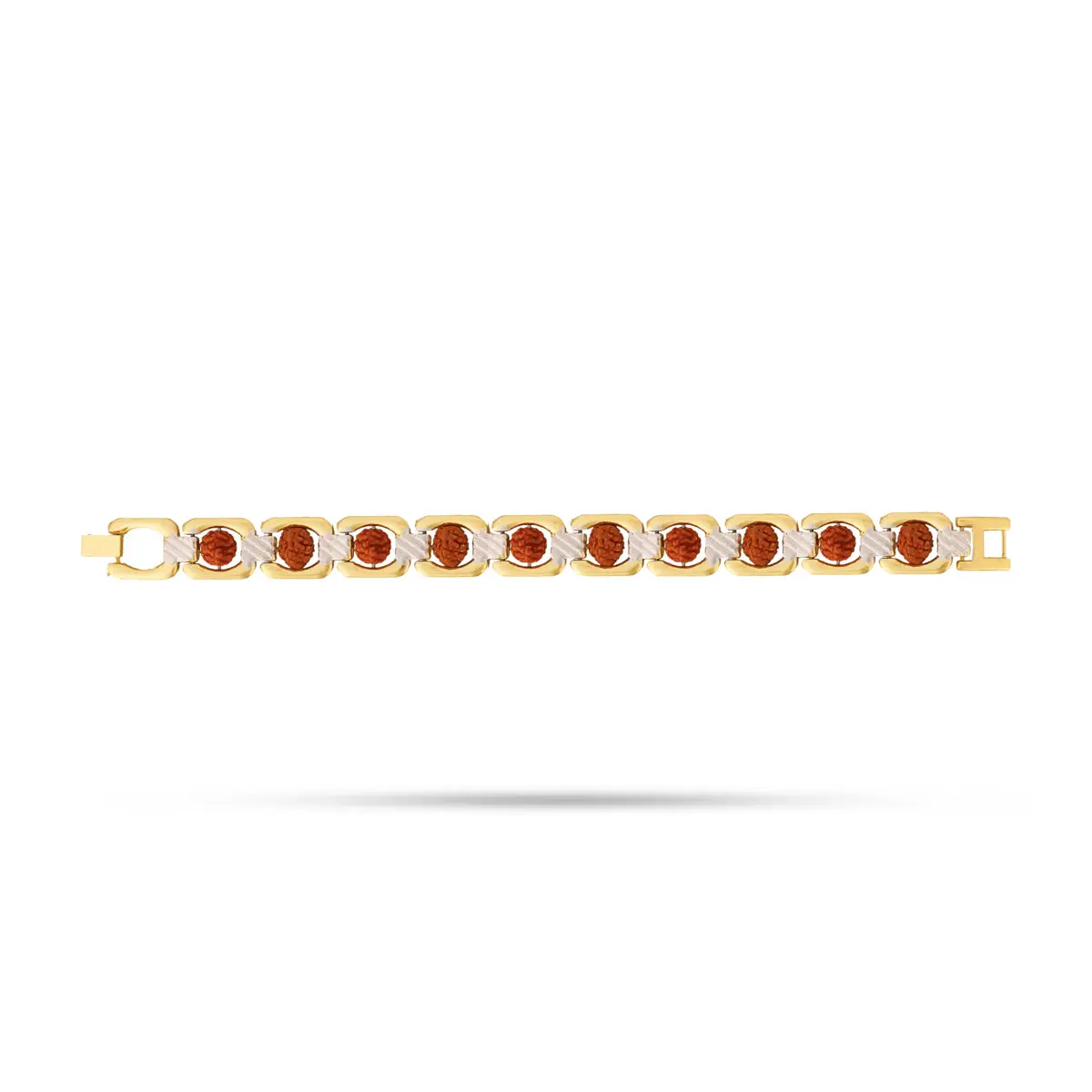 Rudraksha Bracelet With Gold Cup - 0.5 x 7 Inches | Rudraksh Hand Band for Stress & Anxiety Relief