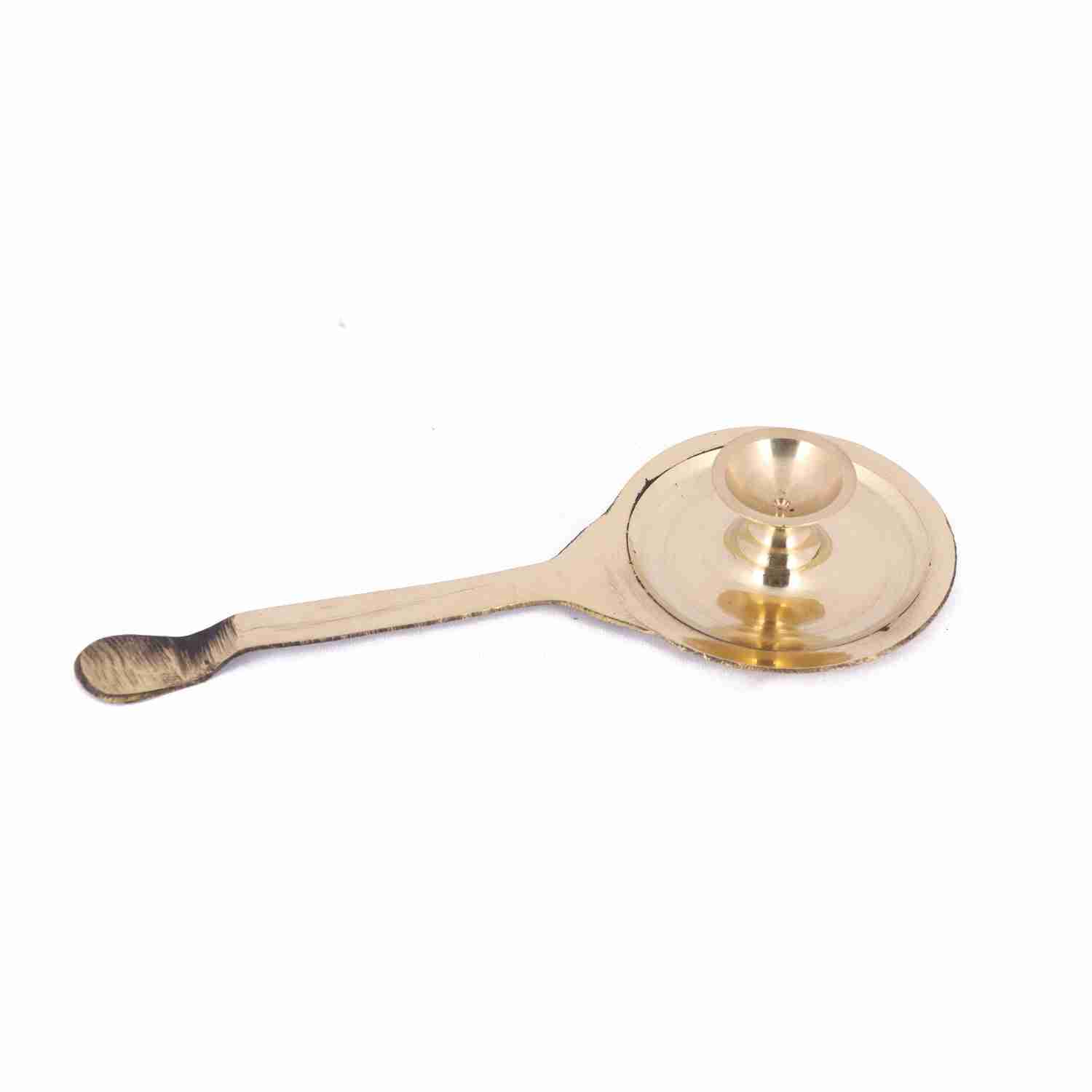 Brass Aarti - 1 x 10 Inches | One Mukh Spoon Karpoora Burner/ Pooja Aarti/ Aarti Diya for Home