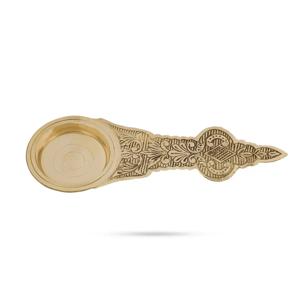 One Mukh Spoon Brass Aarti With Handle - 2.5 x 9 Inches | Camphor Burner With Base/ Kapoor Dhani for Pooja
