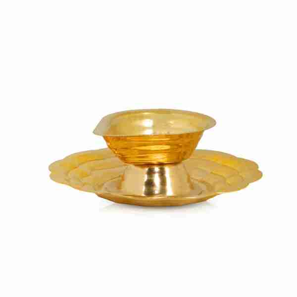 Brass Vilakku - 1 x 3 Inches | One Mukh Deep With Plate/ Kartik Deepam/ Diya for Pooja