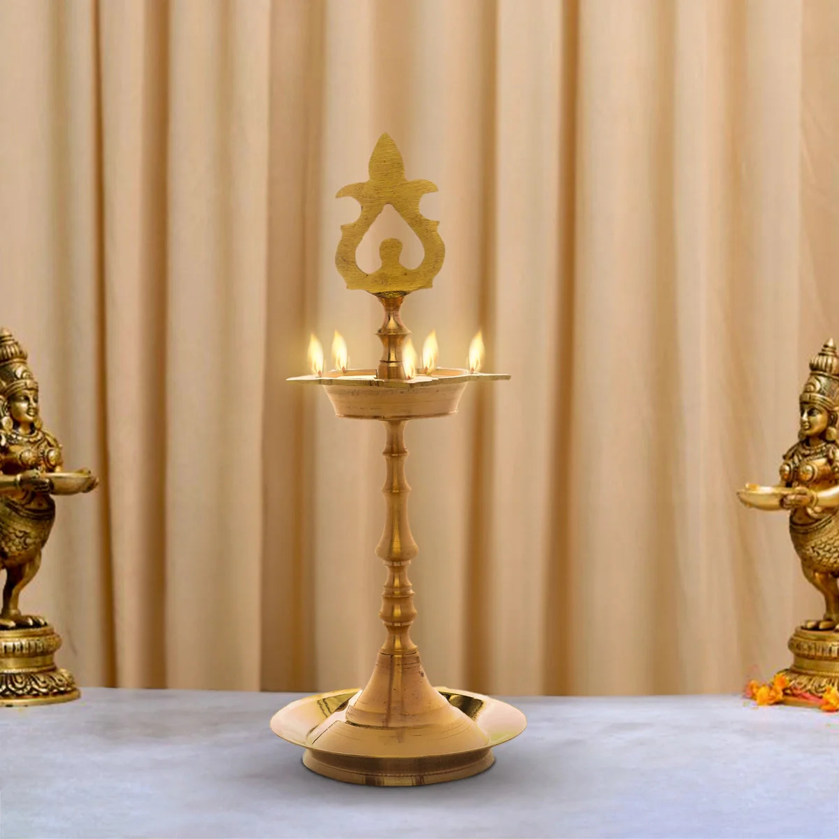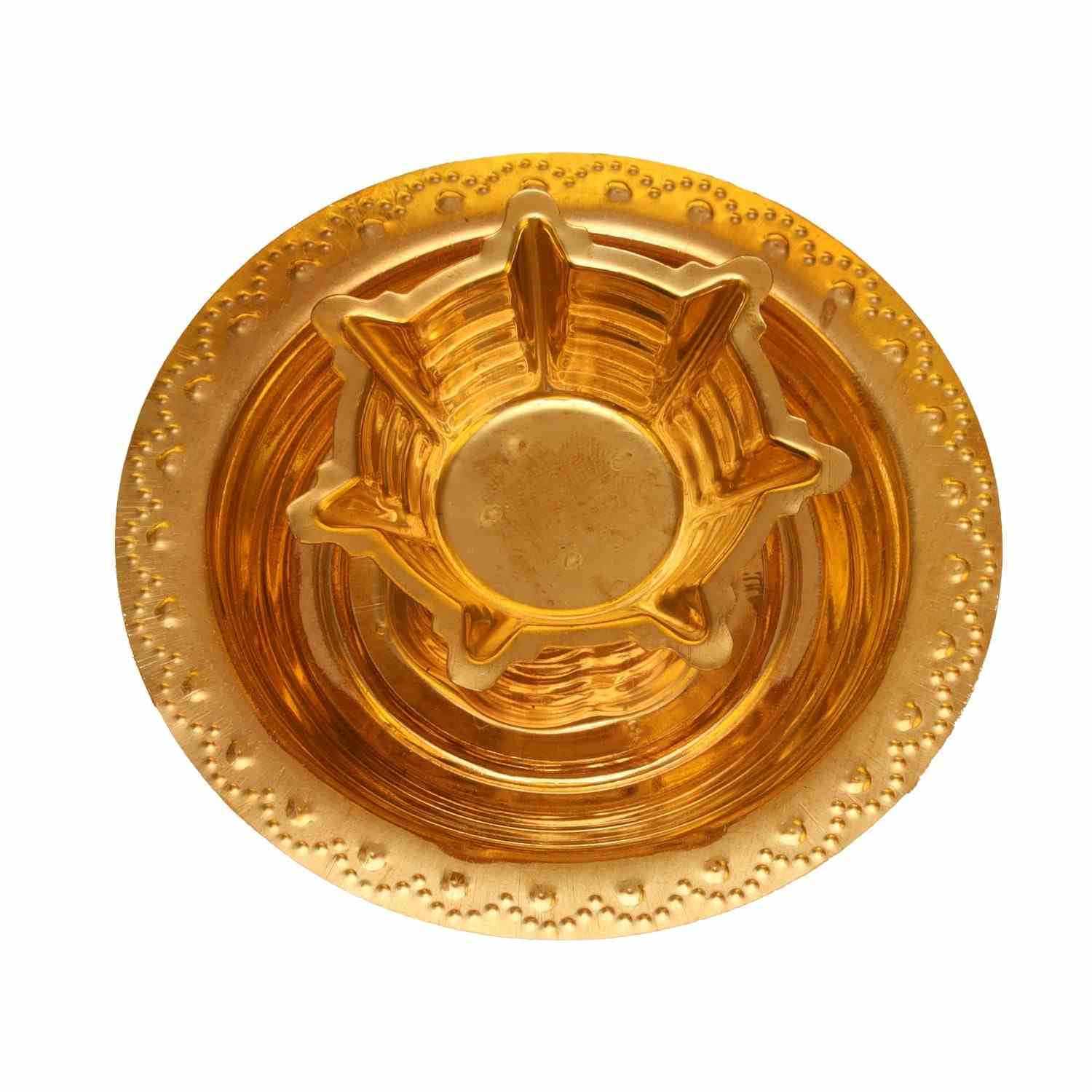 Seven Face Brass Lamp With Plate - 1 x 3.5 Inches | Brass Deepam/ Seven Star Brass Vilakku for Pooja/ 20 Gms