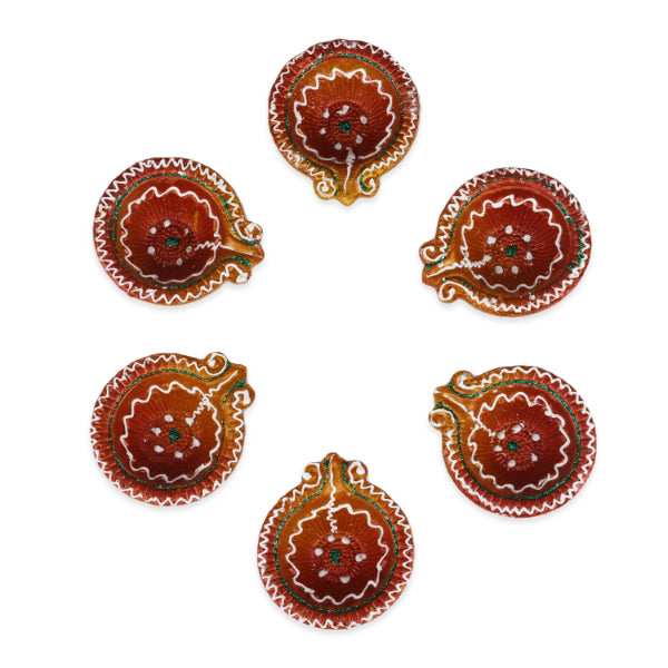 Decorative Diya Set - 2 x 2 Inch | 6 Pcs/ Agal Vilakku/ Clay Deepam for Pooja/ Assorted Design