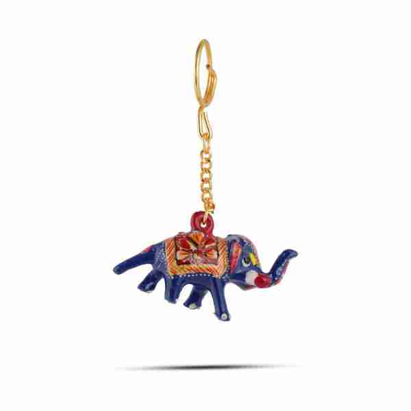 Elephant Statue Key Chain - 1.5 x 2.5 Inches | Painted Elephant Idol Key Ring/Wooden Key Holder for Car & Bike