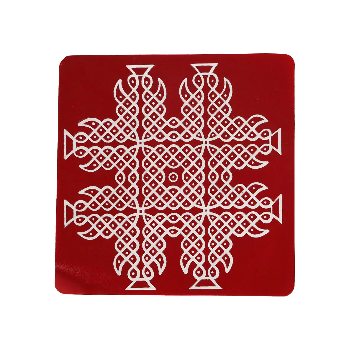 Maroon Kolam Sticker Set - 7 x 7 Inches | 4 Pcs/ Rangoli Sticker/ Muggu Sticker for Home Decor