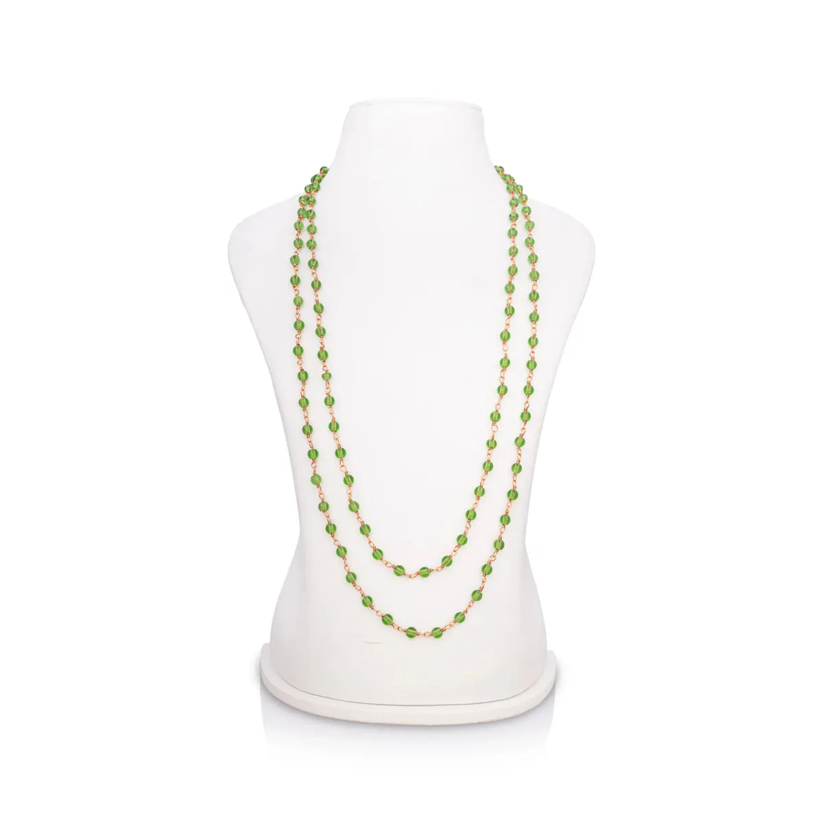 Green Crystal Mala - 24 Inches | 6 mm/ 108 Beads Green Stone Mala/ Copper Knot Green Colour Mala for Meditation