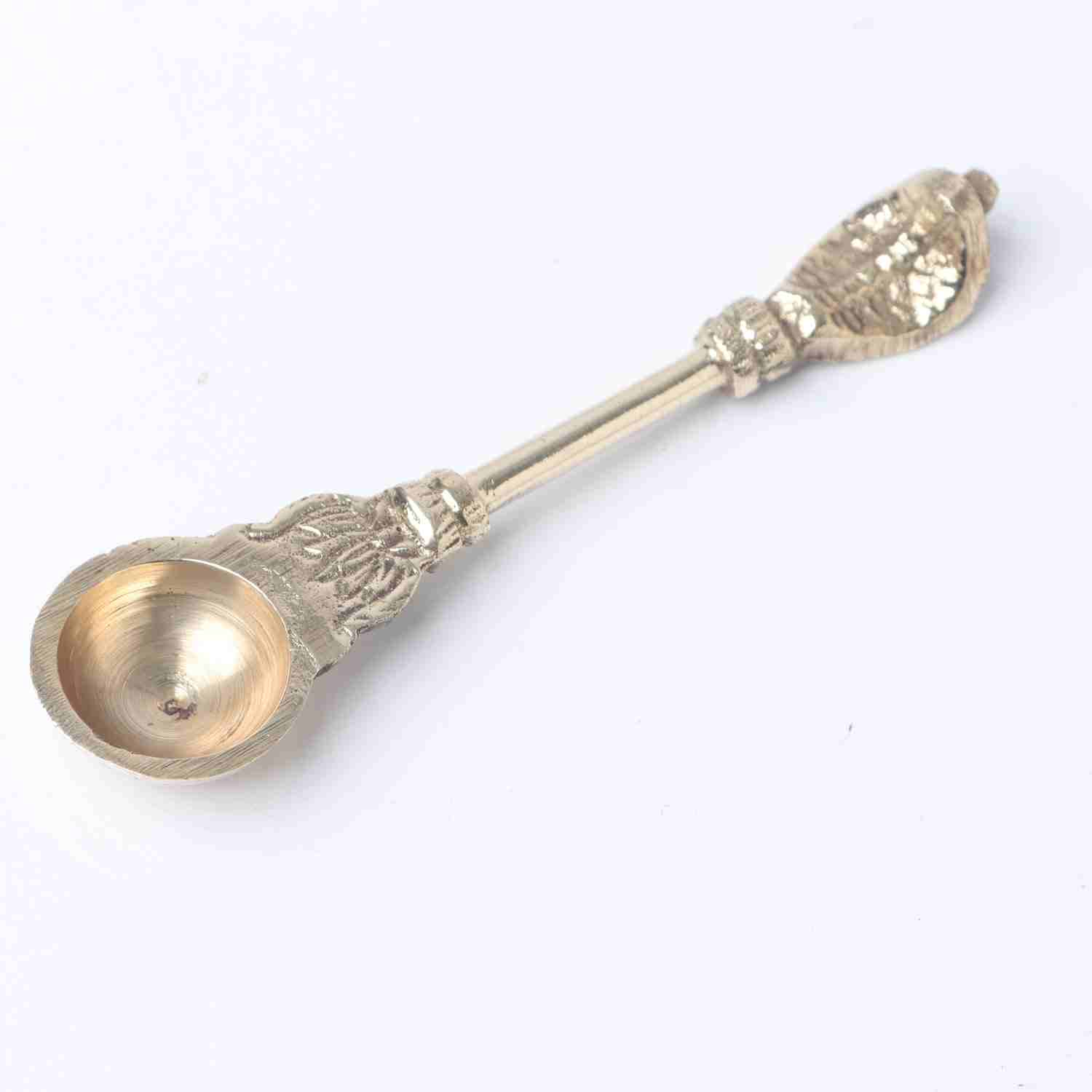 Brass Achmani - 6 Inches | Pooja Spoon/ Pali Spoon/ Nagam Handle Uddharani for Pooja