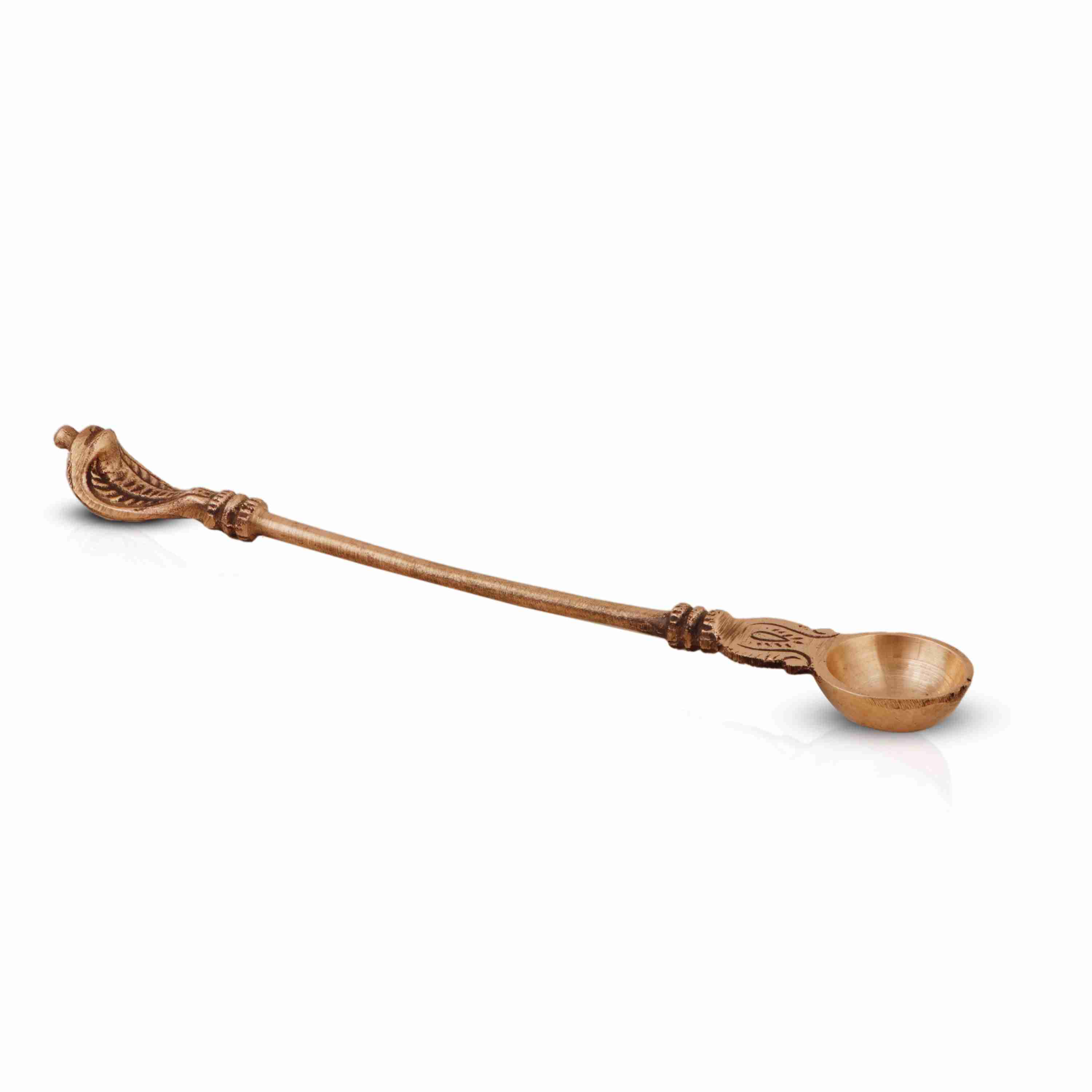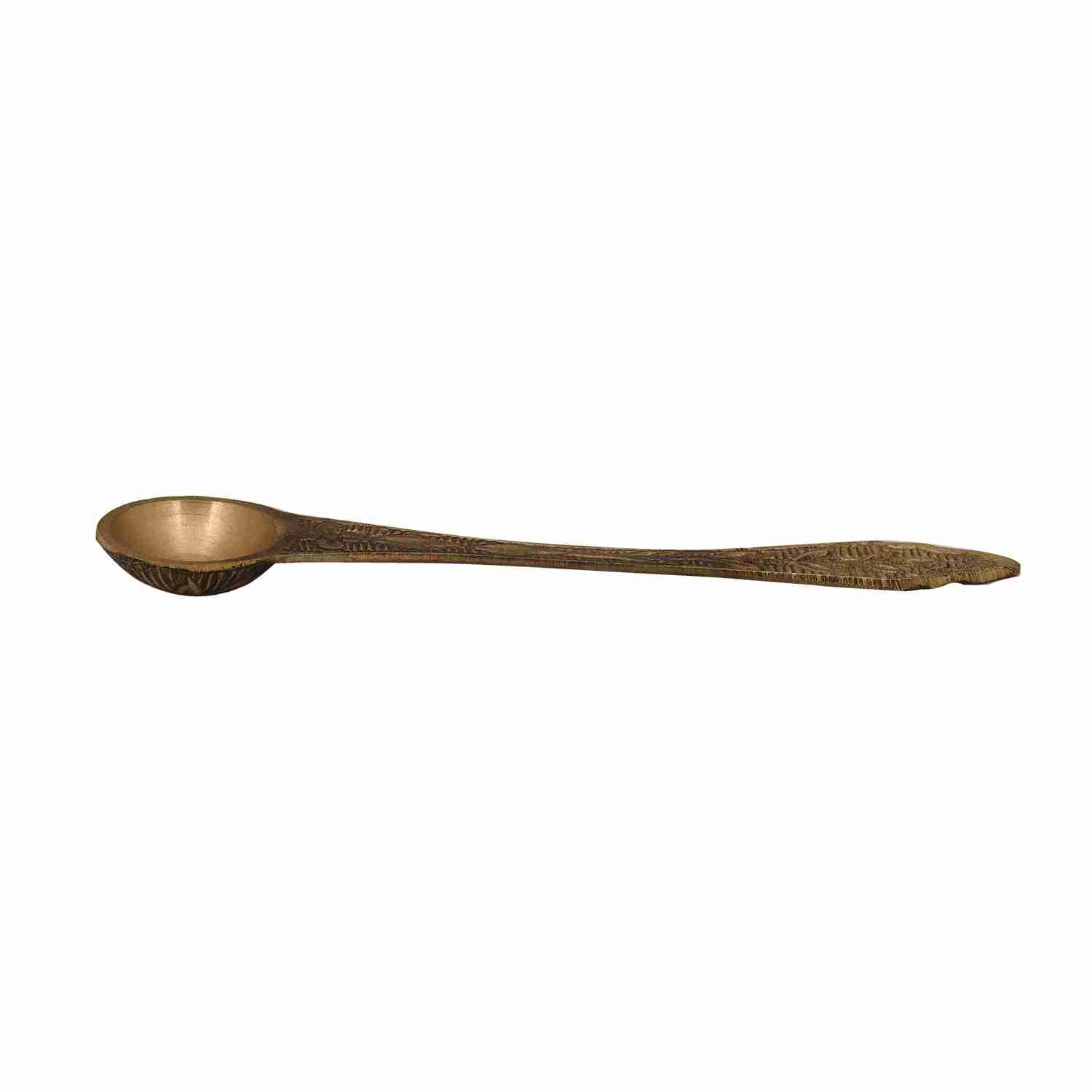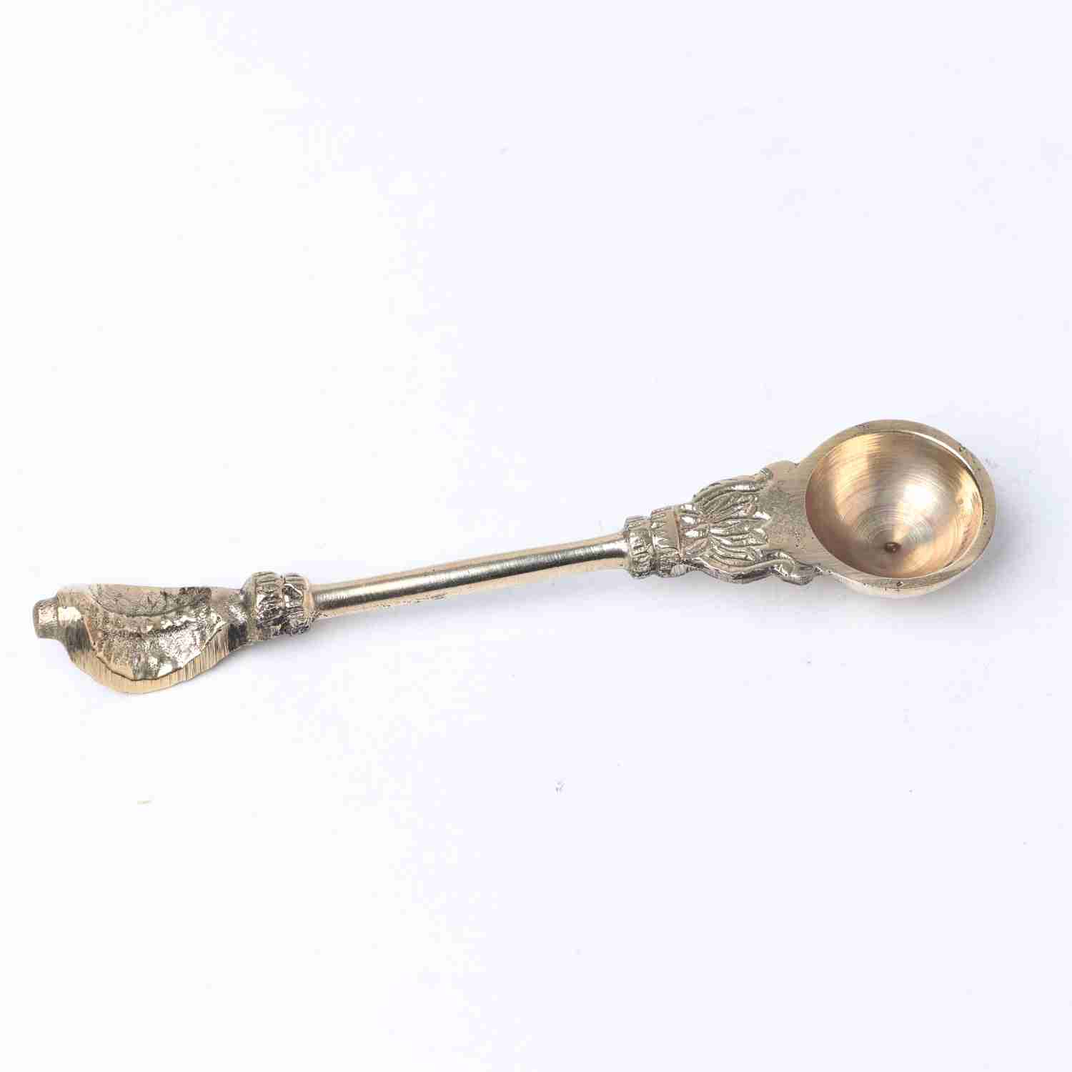 Achmani - 6.5 x 2 Inches | Antique Brass Pali Spoon/ Peacock Design Uddharani for Pooja/ 120 Gms Approx