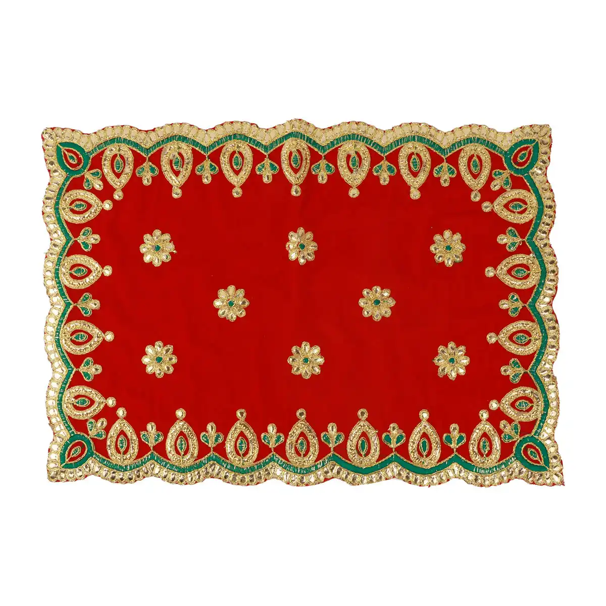 Pooja Aasan - 18 x 24 Inches | Velvet With Embossed Jari Design Pooja Mat/ Pooja Aasan Mat for Deity