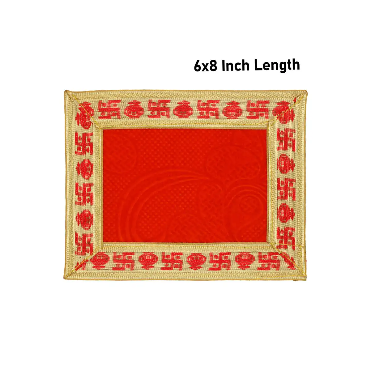 Pooja Aasan - 6 x 8 Inches | Velvet With Embossed Jari Border Pooja Mat/ Pooja Aasan Mat for Deity