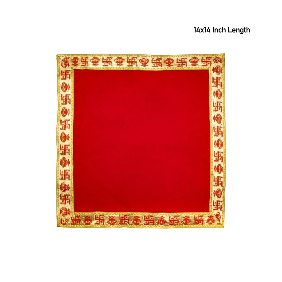 Pooja Aasan - 14 x 14 Inches | Velvet With Embossed Jari Design Pooja Mat/ Pooja Aasan Mat for Deity