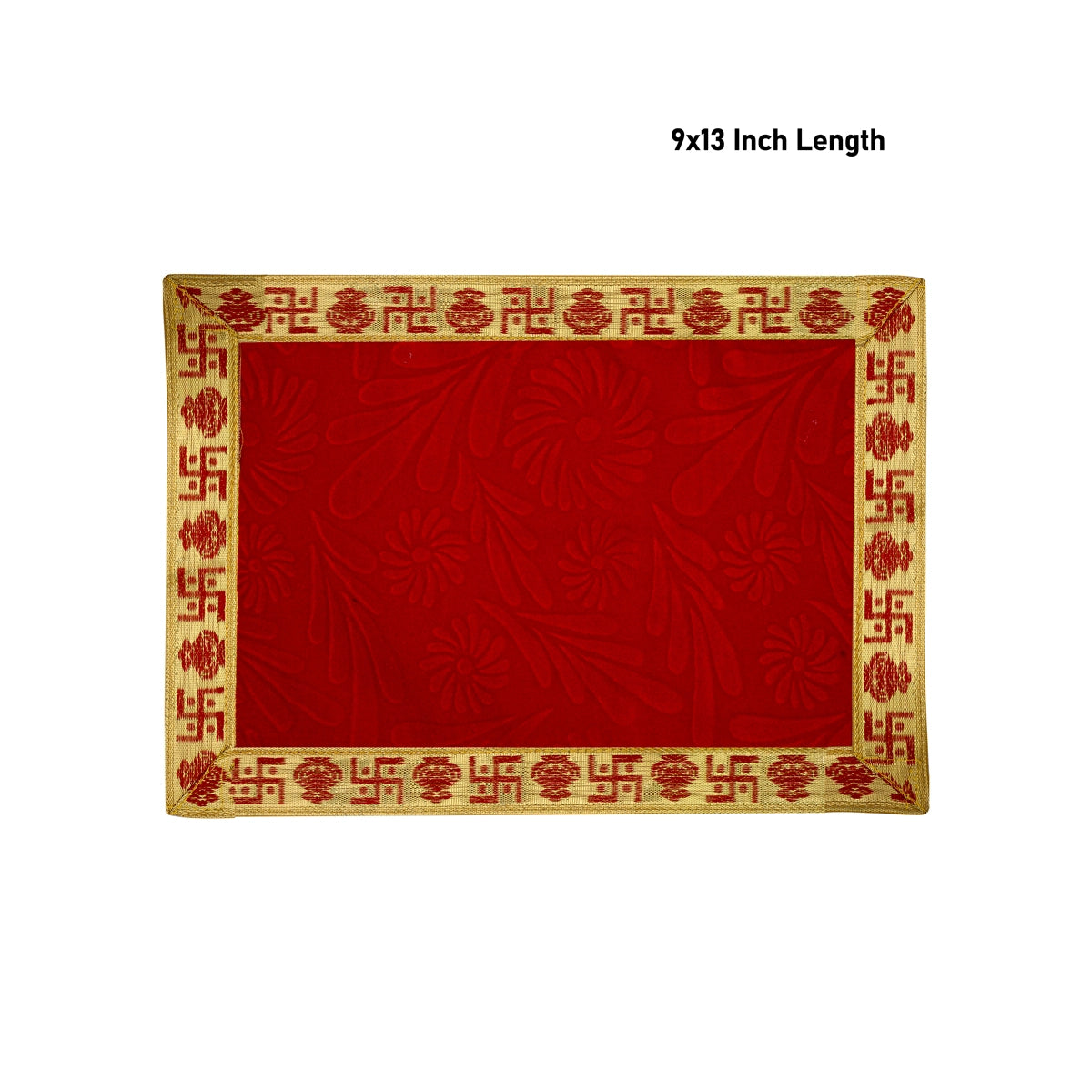 Pooja Aasan - 9 x 13 Inches | Velvet With Embossed Jari Design Pooja Mat/ Pooja Aasan Mat for Deity