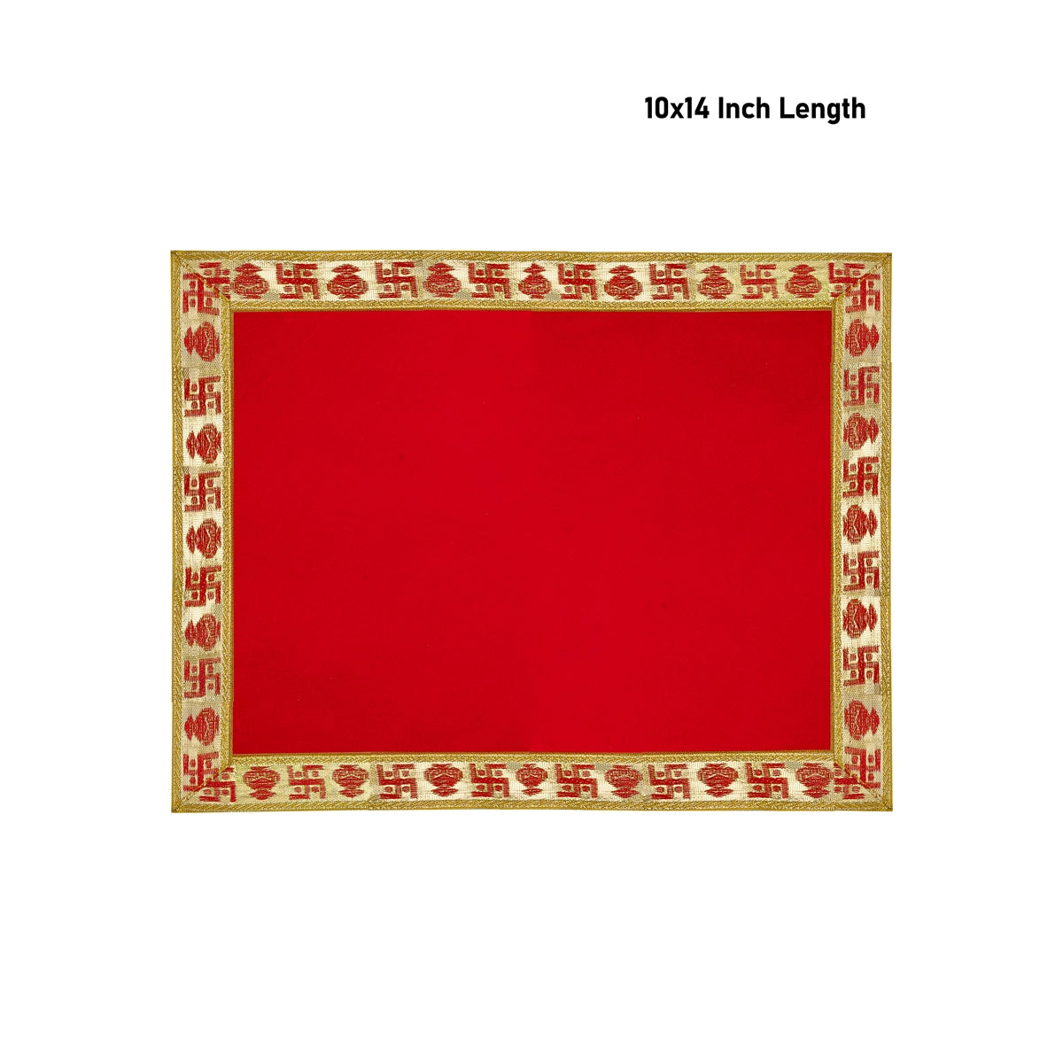 Pooja Aasan - 10 x 14 Inches | Velvet With Embossed Jari Design Pooja Mat/ Pooja Aasan Mat for Deity