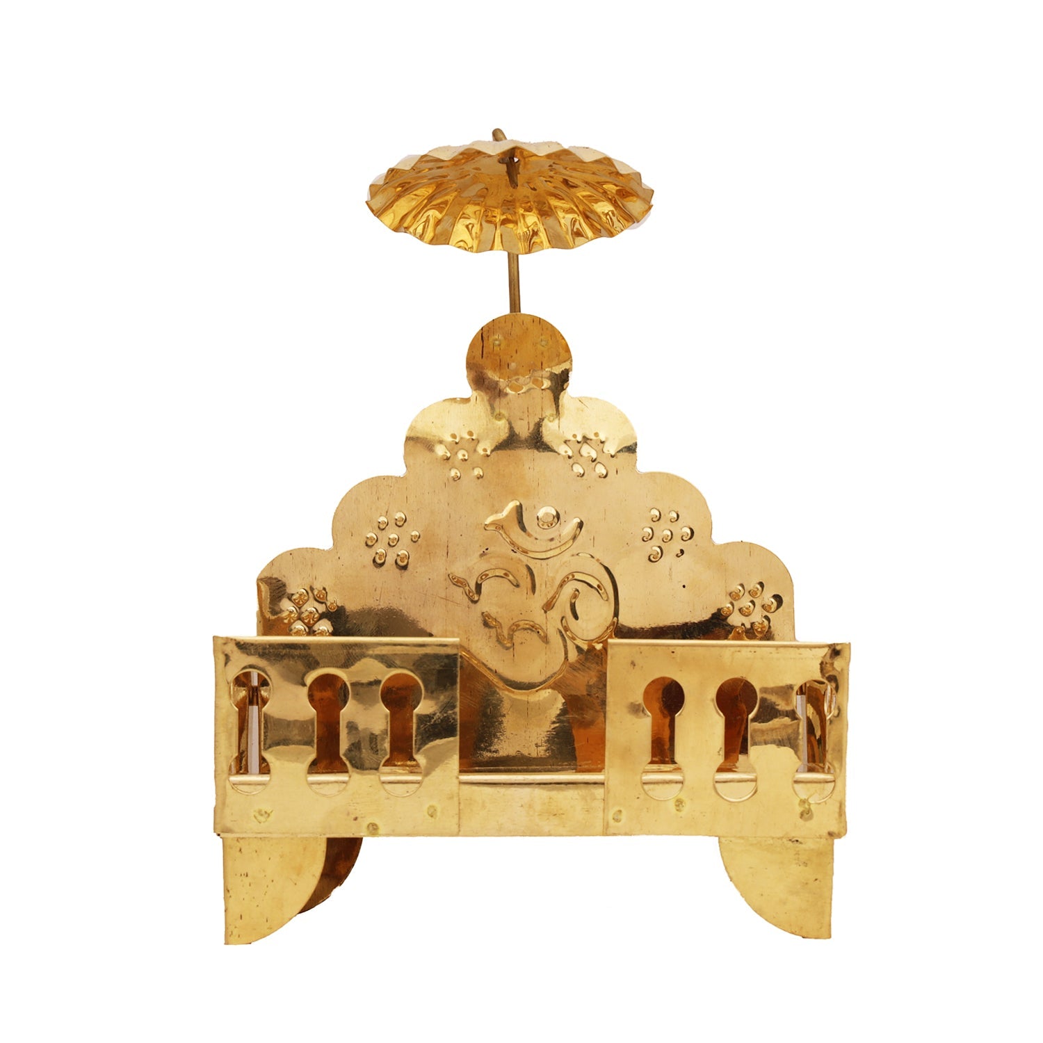 Simhasan Chatri - 8 x 5 Inches | Aluminium Chowki/ Gold Polish Bajot for Pooja/ 310 Gms Approx