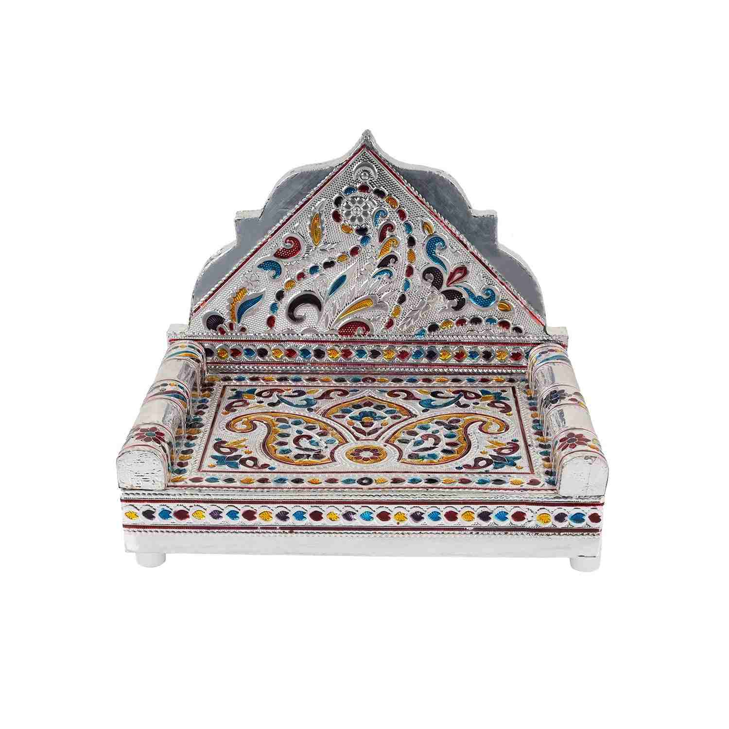 Sinhasan - 7 x 10 Inches | Silver & Gold Finish Aasan/ Meenakari Chowki/ Bajot for Deity